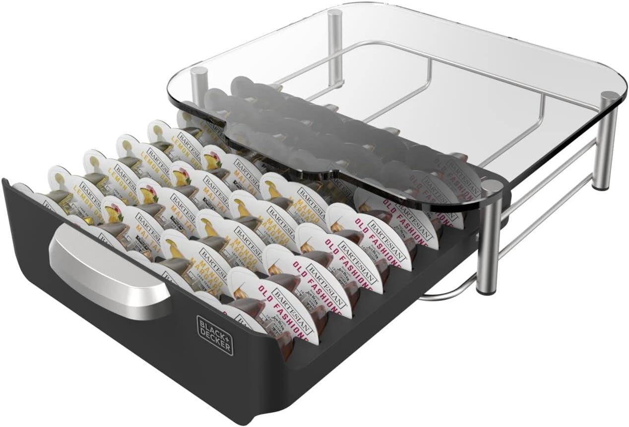 COMPATIBLE: Designed to sit under your bev by BLACK+DECKER Cocktail Maker* to conveniently store your Bartesian capsules*