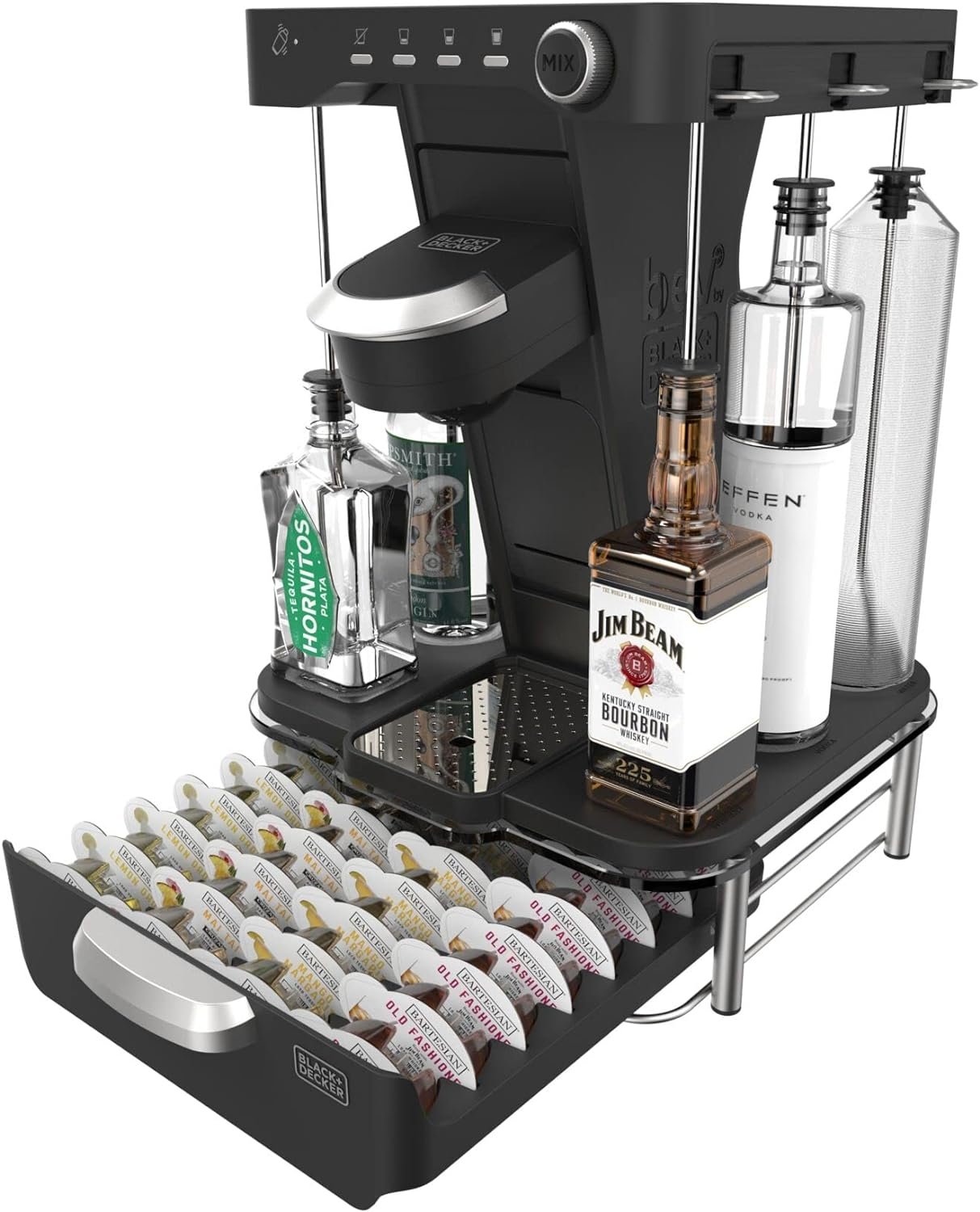 STYLISH: Stainless steel drawer with matte black finish and tinted tempered glass top is designed to complement your bev by BLACK+DECKER Cocktail Maker*