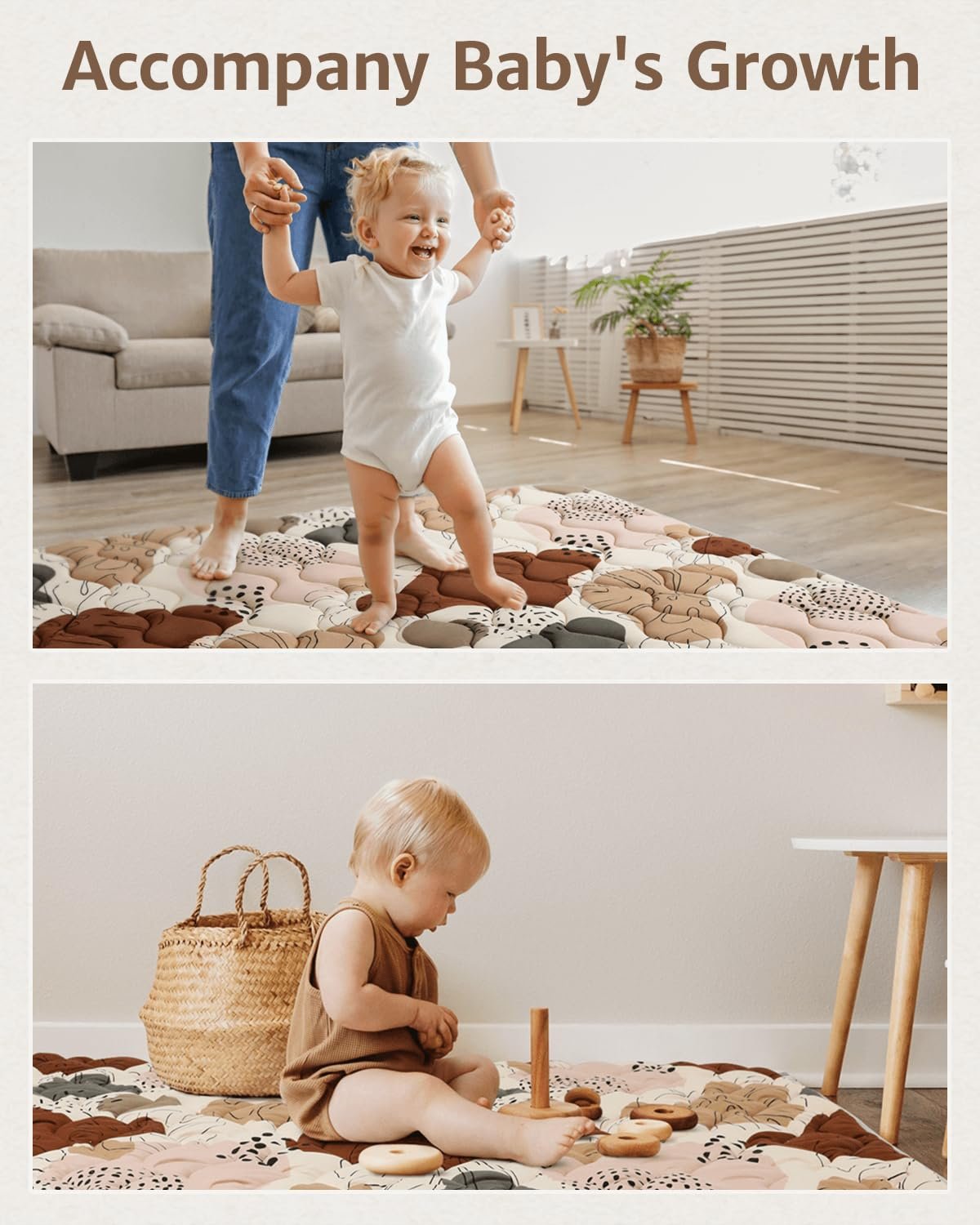 Portable & Machine Washable – Our 43×43 baby crawling mat is smaller,one-piece and foldable, which is easier to pack to carry or store to save space, making it perfect for on-the-go playtime. You can also hand over the job to the washing machine to helps you clean the stains on the baby playmat, which makes your life more easier.