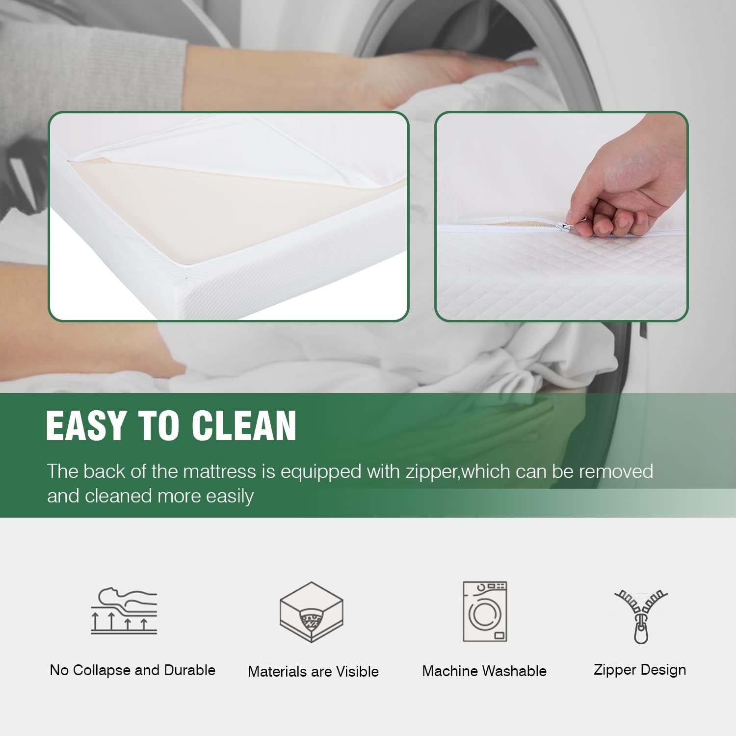 【Easy to Clean Mattress】This white memory foam mattress comes with a removable cover, gel memory foam mattress top and middle zip design, you can easily remove the cover to machine wash, convenient for you to wash the foam mattress regularly and keep it clean. Roll up mattress drying is more convenient and easy to store.