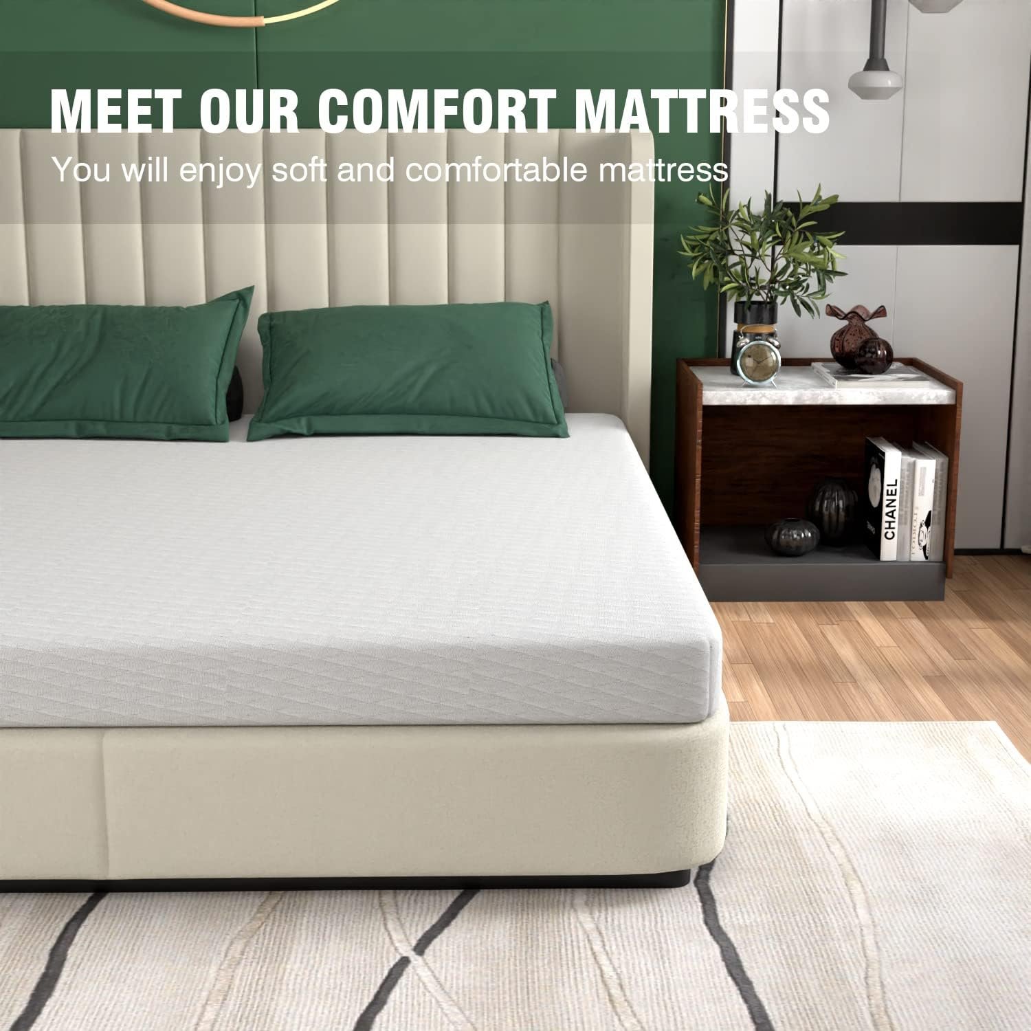 【Comfort Mattress】This breathable mattress is skin friendly and suitable for all ages. The gel-filled memory foam keeps you cool while you sleep, and the comfortable fit reduces pressure points, giving your body the perfect support from head to toe, creating a medium-firm feel that effectively supports body pressure for a comfortable night’s sleep!