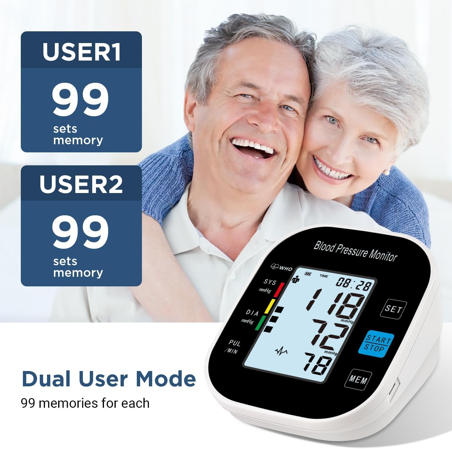 Dual User Functionality & Intuitive Operation – Designed to accommodate 2 users, this blood pressure monitor allows for storage of up to 99 readings per user. Its intuitive one-button operation makes it easy to use for people of all ages.
