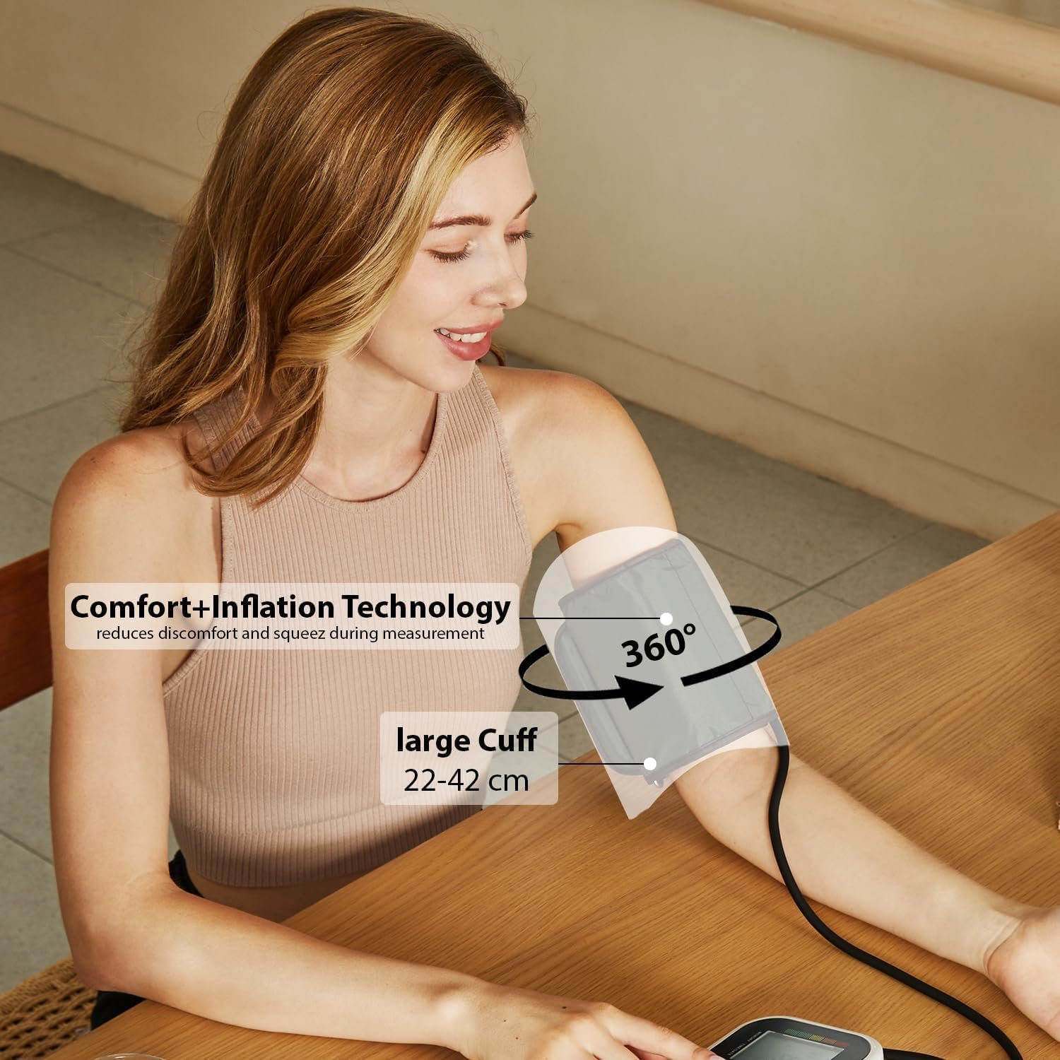 COMFORTABLE LARGE BLOOD PRESSURE CUFF: Crafted from premium, durable material, our bp cuff automatic upper arm ensures long-lasting performance. The easy-wrap extra large blood pressure cuff design allows for effortless placement on your arm and easy bending for a comfortable fit. Whether you have a standard or large-size arm, our bluetooth blood pressure monitor accommodates adult arms ranging from 22-42cm in circumference, providing a perfect and secure fit for accurate readings every time.