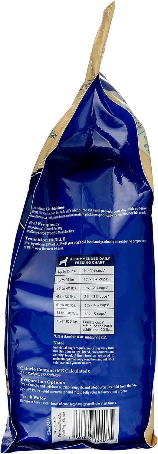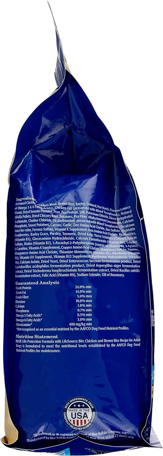 Blue Adult Dry Dog Food Life Protection Formula, Chicken & Brown Rice Recipe, Natural Ingredients, No Artificial Flavors or Preservatives, 5 Pound (Pack of 3)