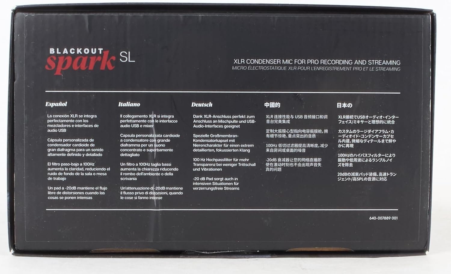Custom Blue condenser capsule: The Blackout Spark SL professional condenser microphone delivers Blue’s legendary broadcast vocal and music sound quality with depth and clarity