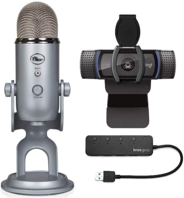 Blue Yeti USB Microphone Bundle with C920S Pro HD Webcam and Knox Gear USB Hub Bundle (3 Items)