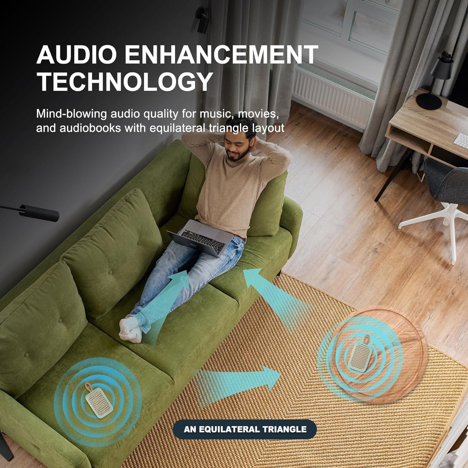 360 Stereo Speakers: Wireless speaker provide a clearer and more natural stereo sound quality compared to single speakers. By adjustment of the sound based on various factors, ClearTone Technology provides the most accurate sound transmission, while our digital signal processing algorithm enhances audio signals to deliver refined and more detailed sound quality with ease. Enjoy your private theater anywhere.