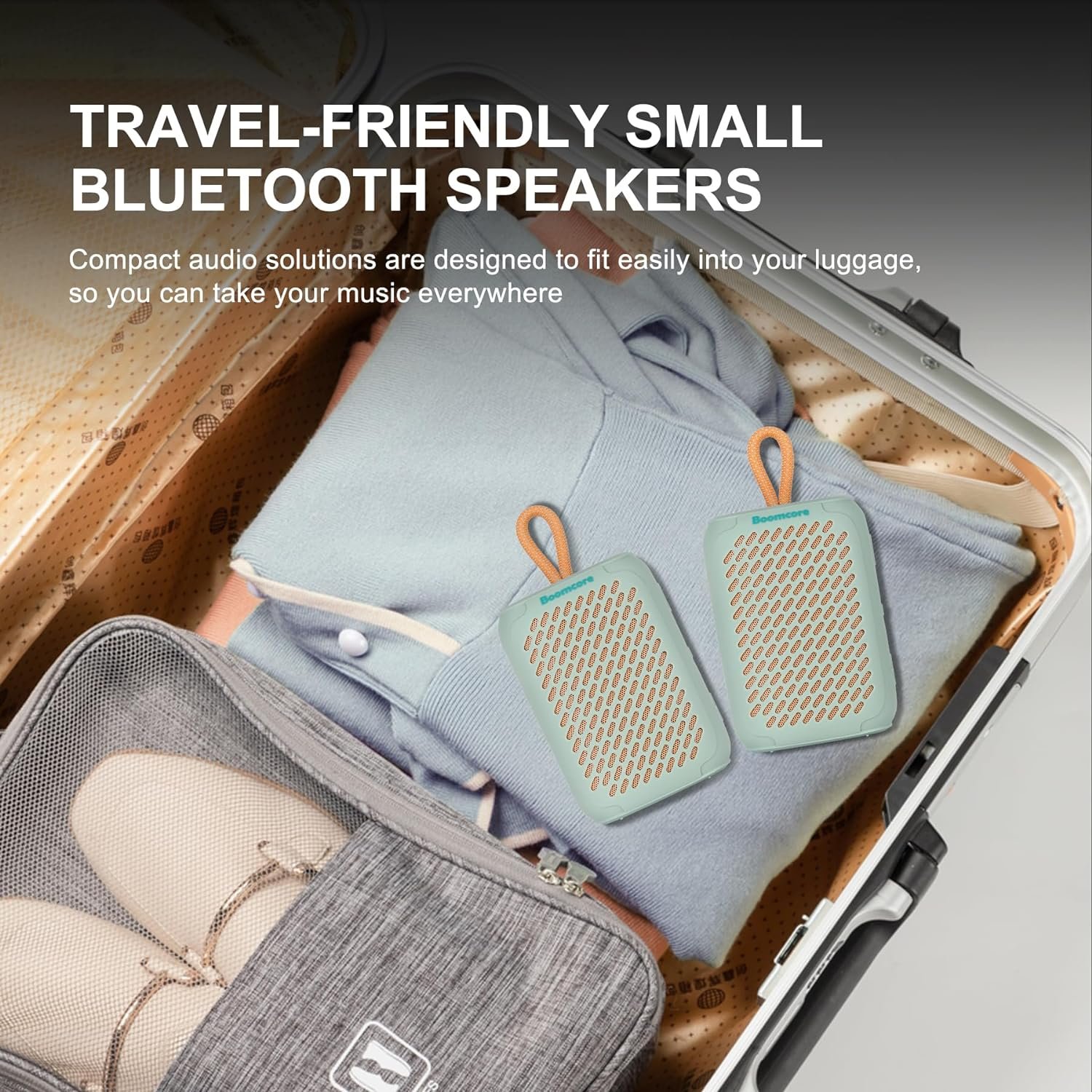 Bluetooth Dual Speakers, Small Speakers with True Wireless Stereo Sound, Mini Speakers Pair with Punchy Bass, IPX7 Waterproof Speaker Set for Travel, Home, Beach – Teal Orange