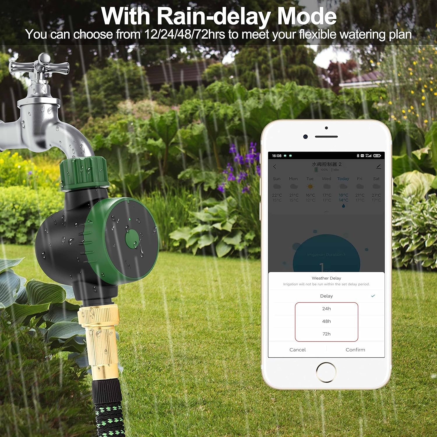 Bluetooth Smart Watering System: Add the smart hose timer for watering to ‘’Smartlife”APP via Bluetooth, this smart hose timer design with Bluetooth 5.0, easy and convenient scheduling through the app within 49.2ft( in the open area without obstruction); Bluetooth water timer allows you to water in minutes, hours, specific days of the week, no more need to check the water timer every time.