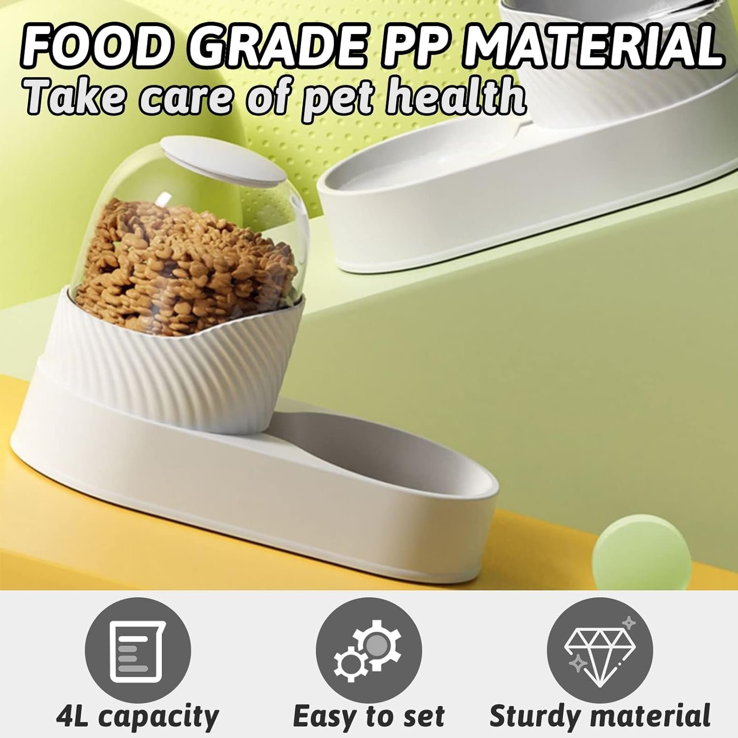 【Food Grade Material】Gravity dog Feeding Station is made of PP Material – Sturdy and durable cat water, provide your pet with healthy food and water (hot water is not recommended). The pet feeder set has white and green color options. The shell is made of wavy wrap around, simple color matching, helps owners take good care of their pets every day.