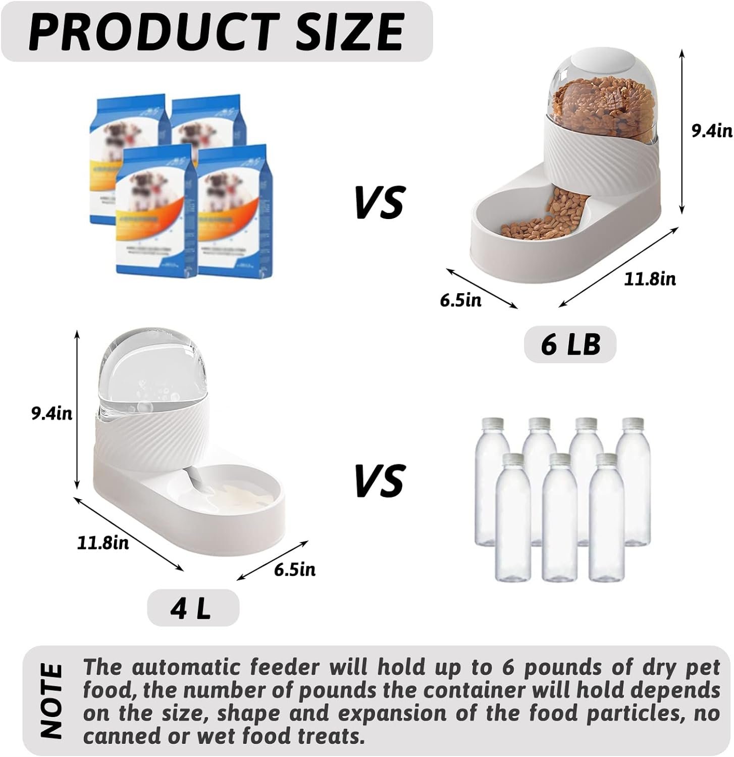 【Large Capacity Feeding】Considering the uniqueness of pets, we offer 2 sizes to choose from. Small size is 12.99×6.69×9.84 inches (6 lbs of dry food and 2 liters of water) and large size is 12.99×6.69×11.81 inches (10 lbs of dry food and 3.5 liters of water). It can be used for 4-6 days for small and medium pets and 2-3 days for large pets, so you don’t have to worry about going out for short periods of time.