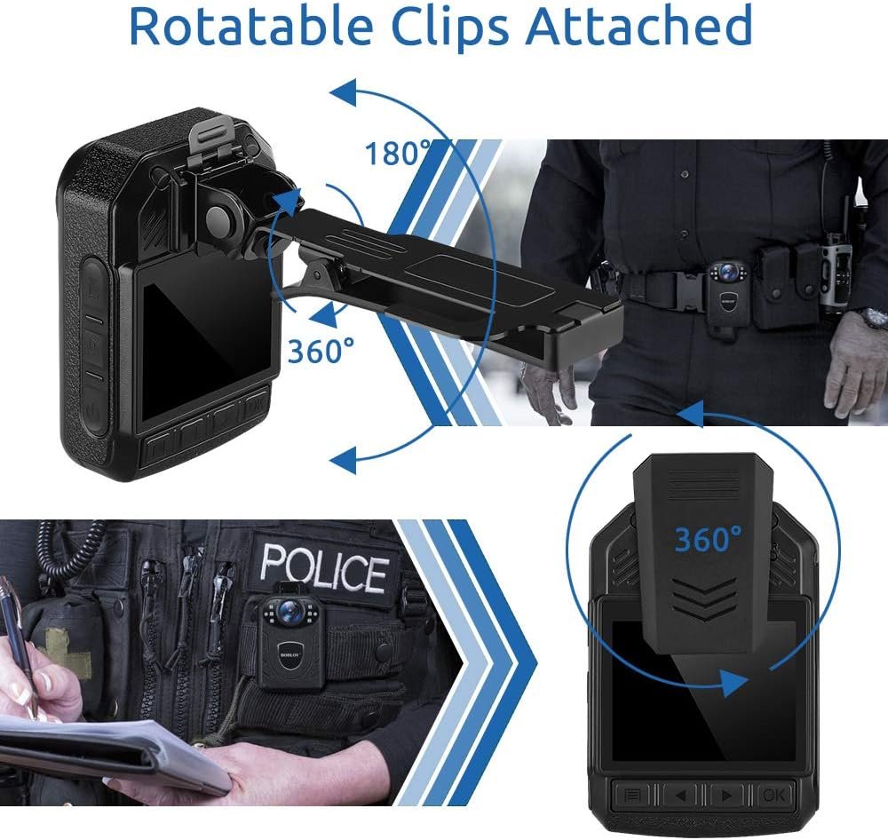 【Audio Video Recording With External Storage 】Body camera with audio recording adopts external micro SD card storage, provides you flexible memory ; Supports external mirco SD cards up to 128G (memory card not Included).memory card not Included).
