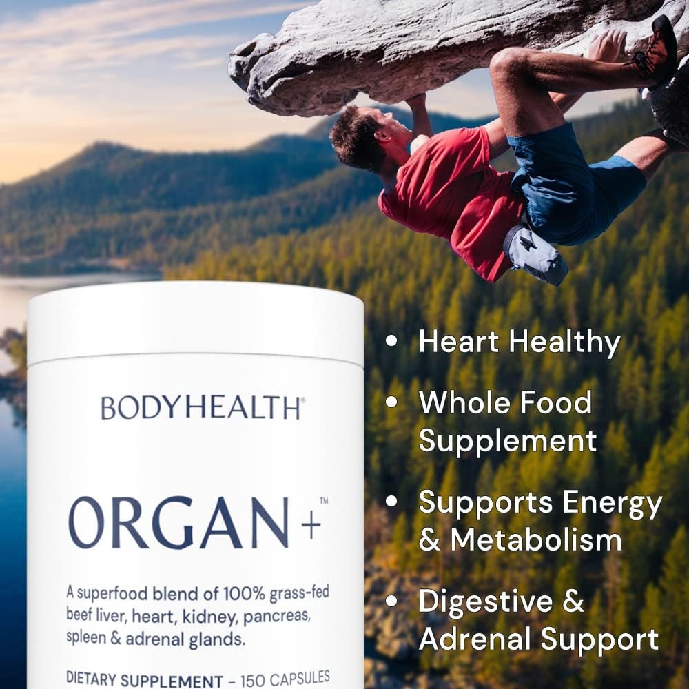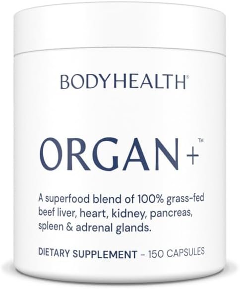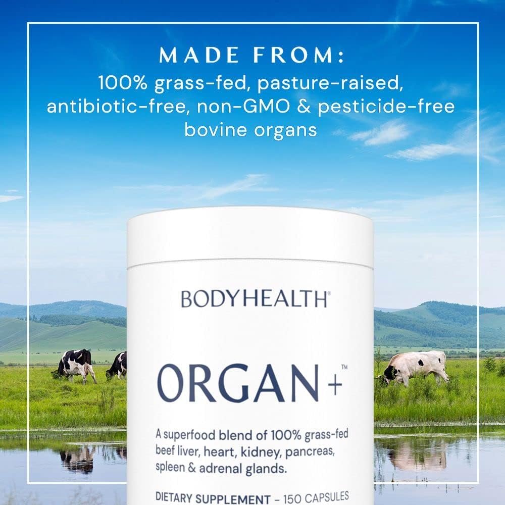 BodyHealth Organ+ Grass-Fed Glandular Organ Complex, Grassfed Beef Organ Supplement, Dessicated Beef Liver, Heart, Kidney, Pancreas, Spleen, Non GMO, Adrenal, Supplement, (150 Capsules)