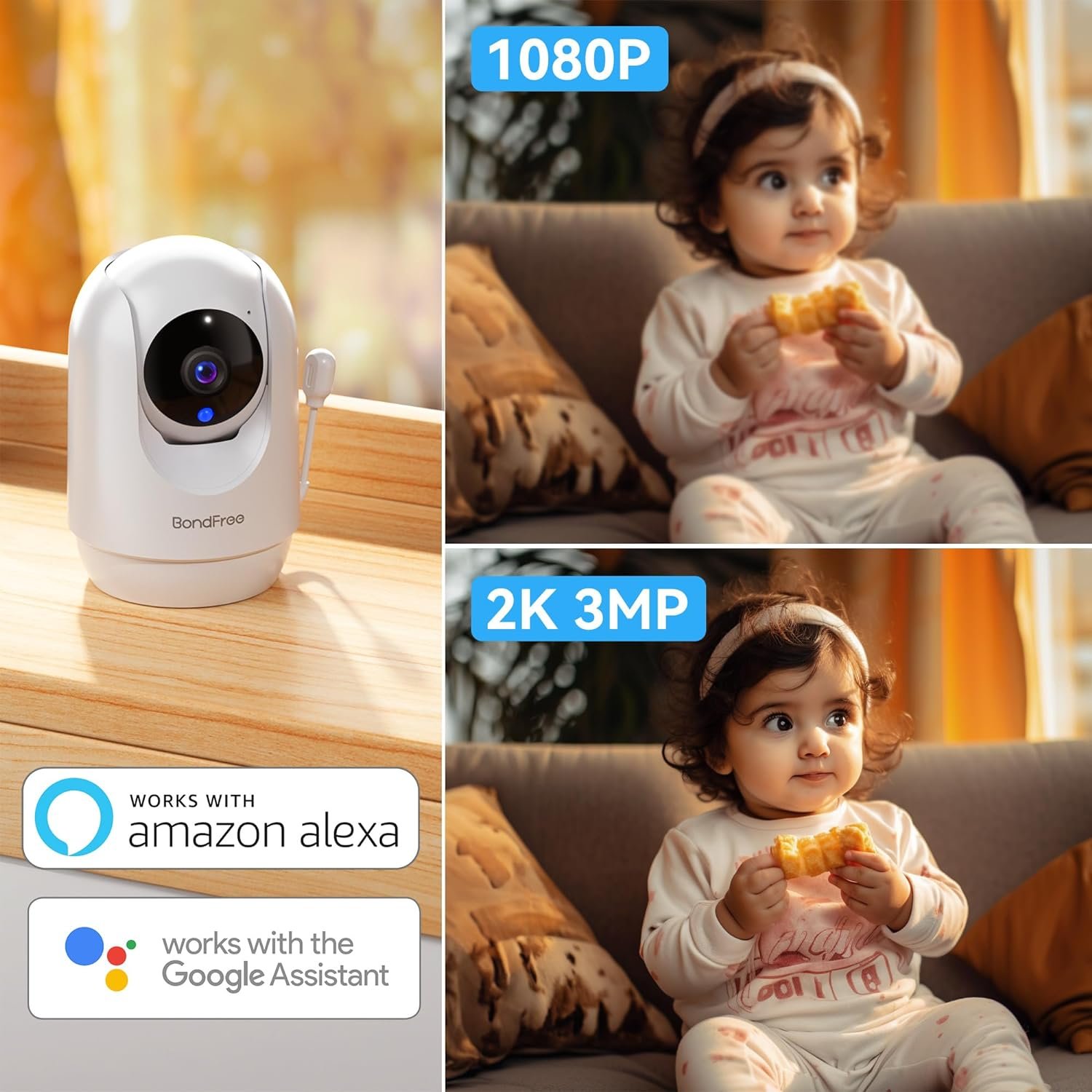 🔔【Intelligent monitoring, timely alarm】Smart baby monitor with app reduces crying, movement and sound noise to alert you to changes in your baby’s status and surroundings. The smart baby monitor connects with google and alexa and supports 24/7 continuous video recording, so you can watch your child’s live video at any time and keep your child safe even when you are outdoors.