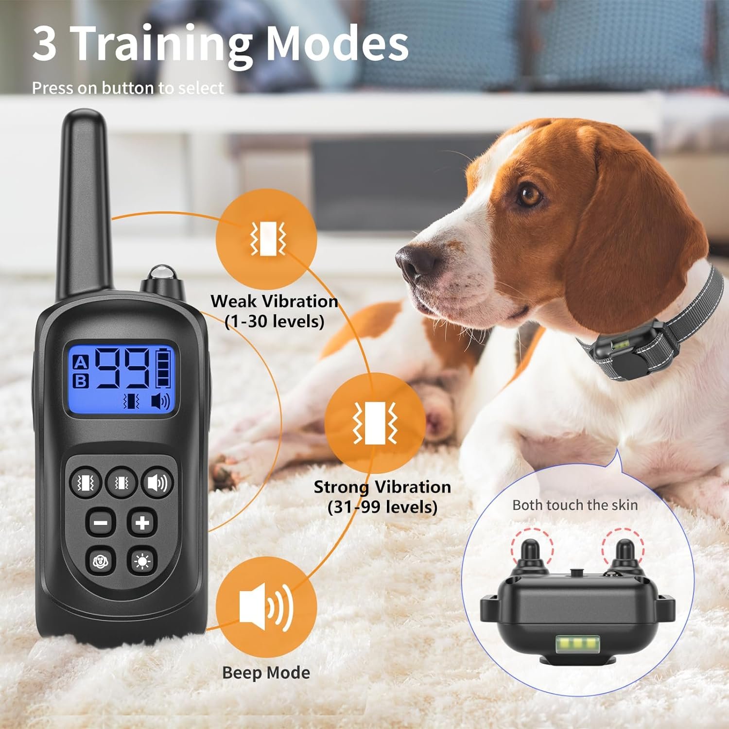 【Vibration Collar for Dogs】No shock dog training collar is completely safe and humane. 3 modes help train canines like a pro: Sound, Light, Vibration(0~99 levels). The powerful vibrating dog collar is enough to train dogs without shocking him. There are no metal prongs inserted into the dog’s neck, making dogs feel more comfortable. Collars are used as a training tool rather than as a punishment.