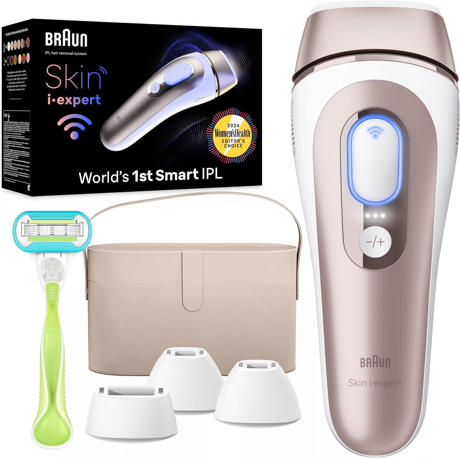 Braun IPL Long-lasting Laser Hair Removal Device for Women & Men, Skin i·Expert, at Home Hair Removal, w/ Free App, Vanity Case, Venus Razor, 4 Smart Heads, Alternative for Laser Hair Removal, PL7387