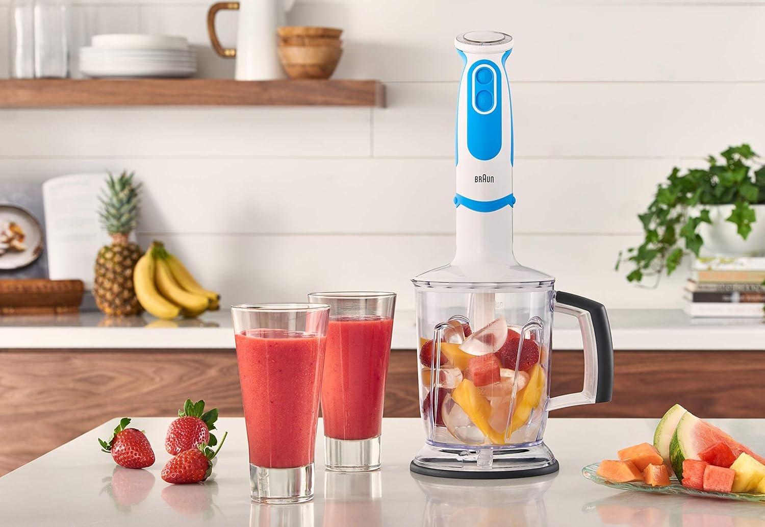Multifunctional versatility: The provided additional blade attachments easily convert your Spiralizer into a 5-cup chopper, a 5-cup blender/ice crusher or a hand blender featuring Braun unique power bell plus and splash control technologies. Easy to clean thanks to the cleaning brush and dishwasher-safe parts.