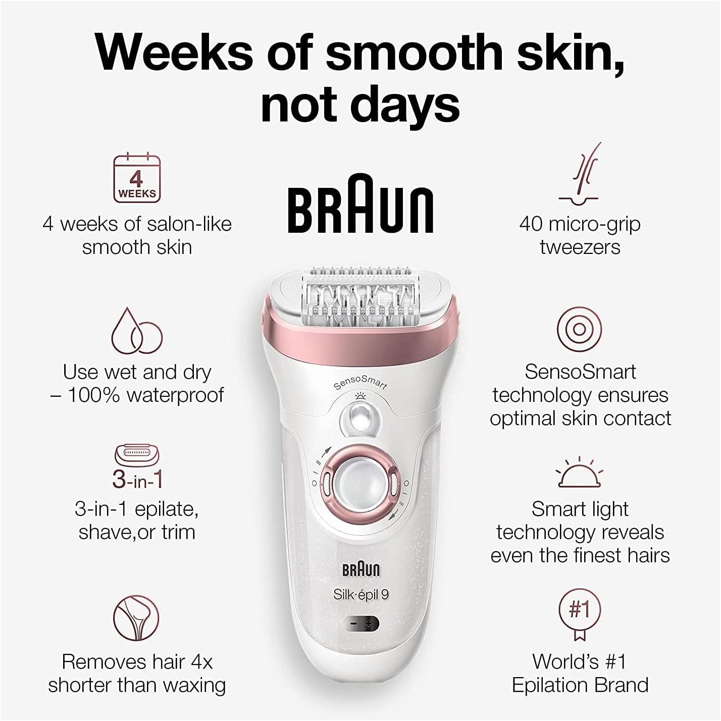 LONG-LASTING RESULTS: epilate once and get smooth skin for up to 4 weeks with America’s #1 epilator brand