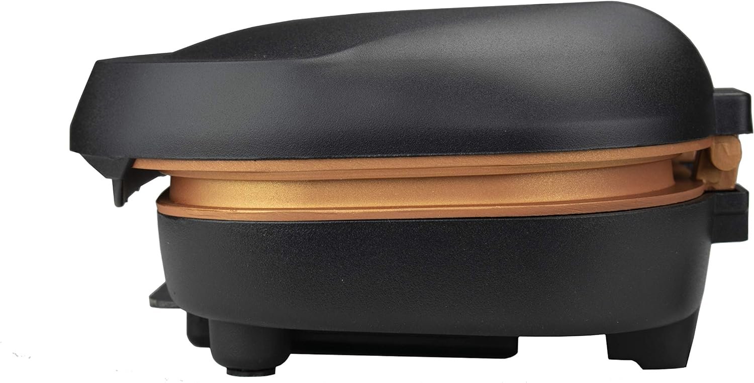 The Brentwood Appliances 2-Serving Non-Stick 750-Watt Indoor Electric Copper Grill and Panini Press cooks mouth watering meats, veggies, and hot paninis. Enjoy fast low fat grilling! Your food slides right off the easy to clean nonstick plates. It includes a removable, dishwasher safe drip tray, and stands upright for space saving storage.