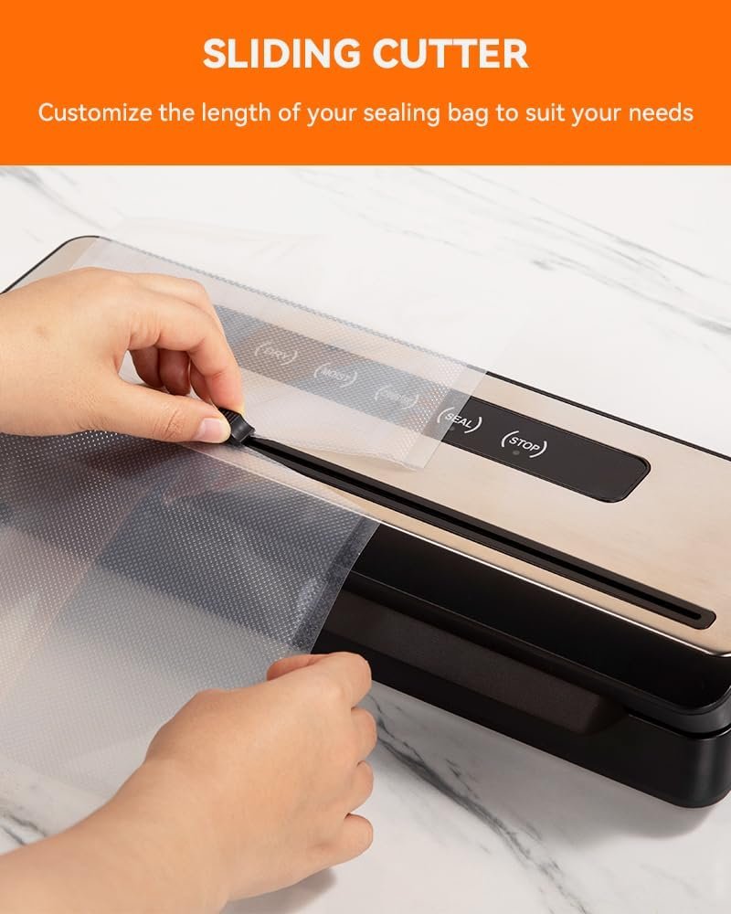 【Multi-Bag Sealing】 Unleash the power of multi-bag sealing! With an ample 32cm sealing length, our vacuum sealer machine allows you to seal multiple bags simultaneously, saving you time and effort in the kitchen.