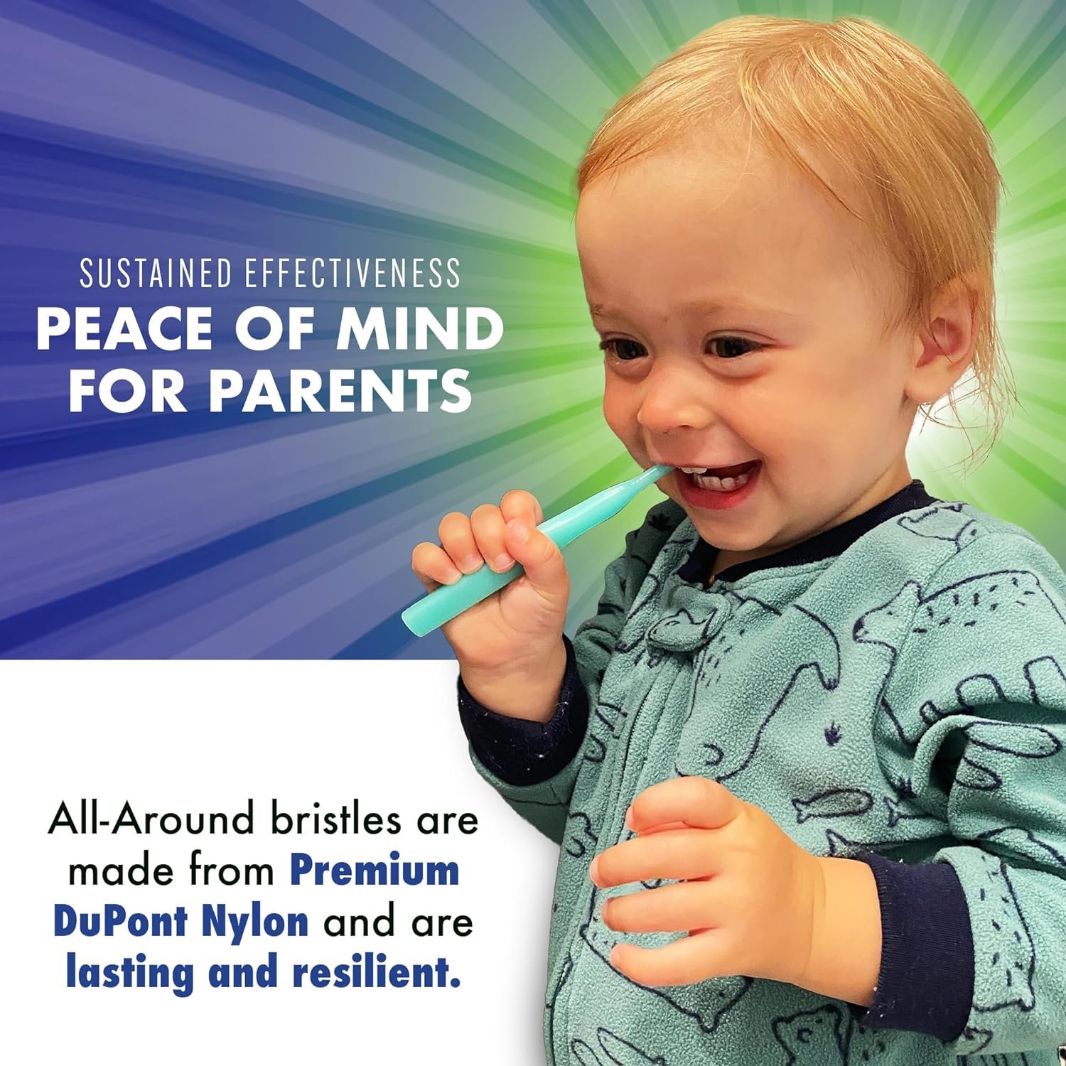 360° All-Around Cleaning for Babies: The baby toothbrushes feature a 360° round brush head that effectively cleans teeth, tongue, gums, cheeks, and all the hard-to-reach places, ensuring a thorough clean for infants and toddlers.