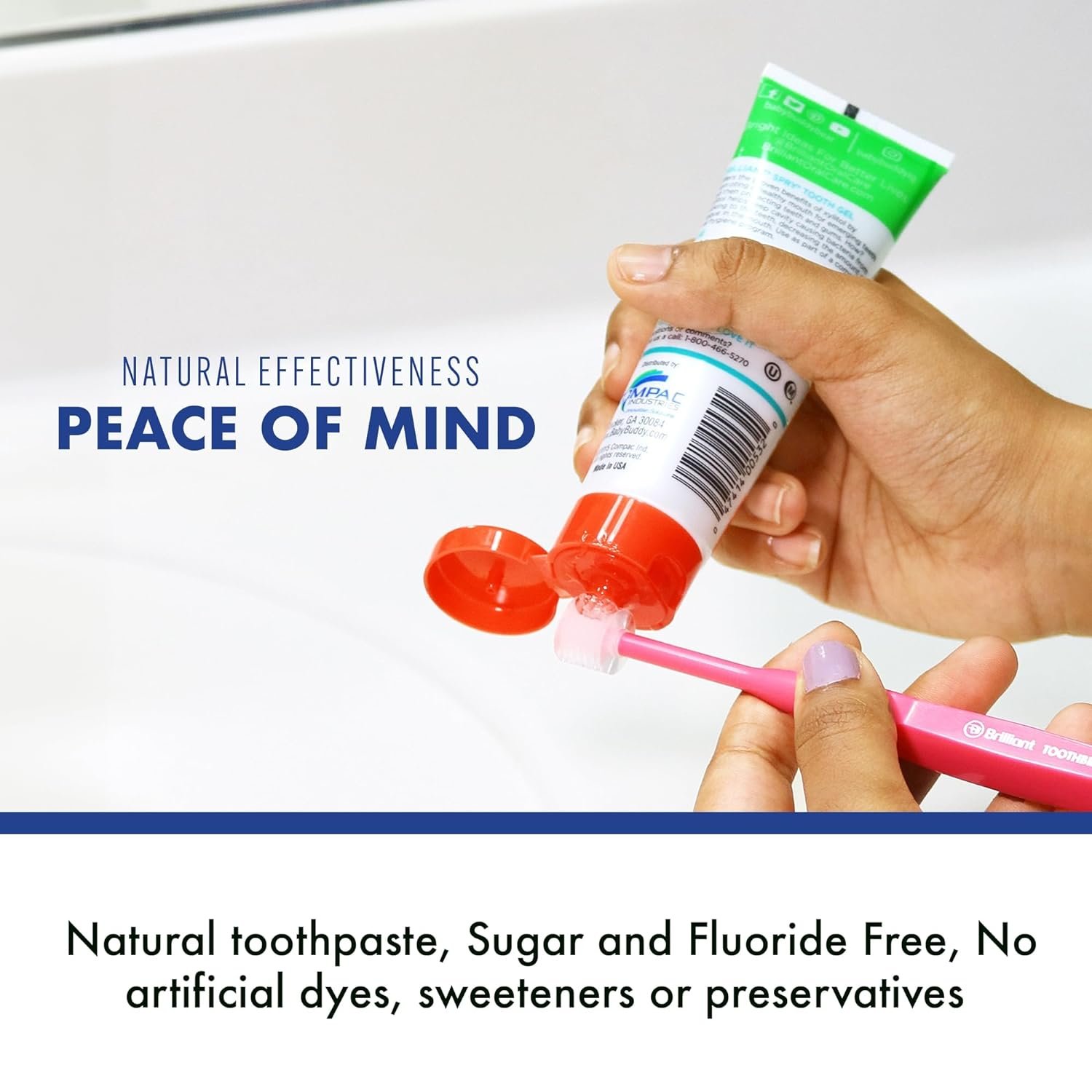 Natural and Safe Toothpaste: The fluoride-free toothpaste is sweetened with xylitol, a natural sweetener that protects teeth and is safe if swallowed. The delicious strawberry banana flavor turns brushing into a delightful experience for children aged 3 months and older.