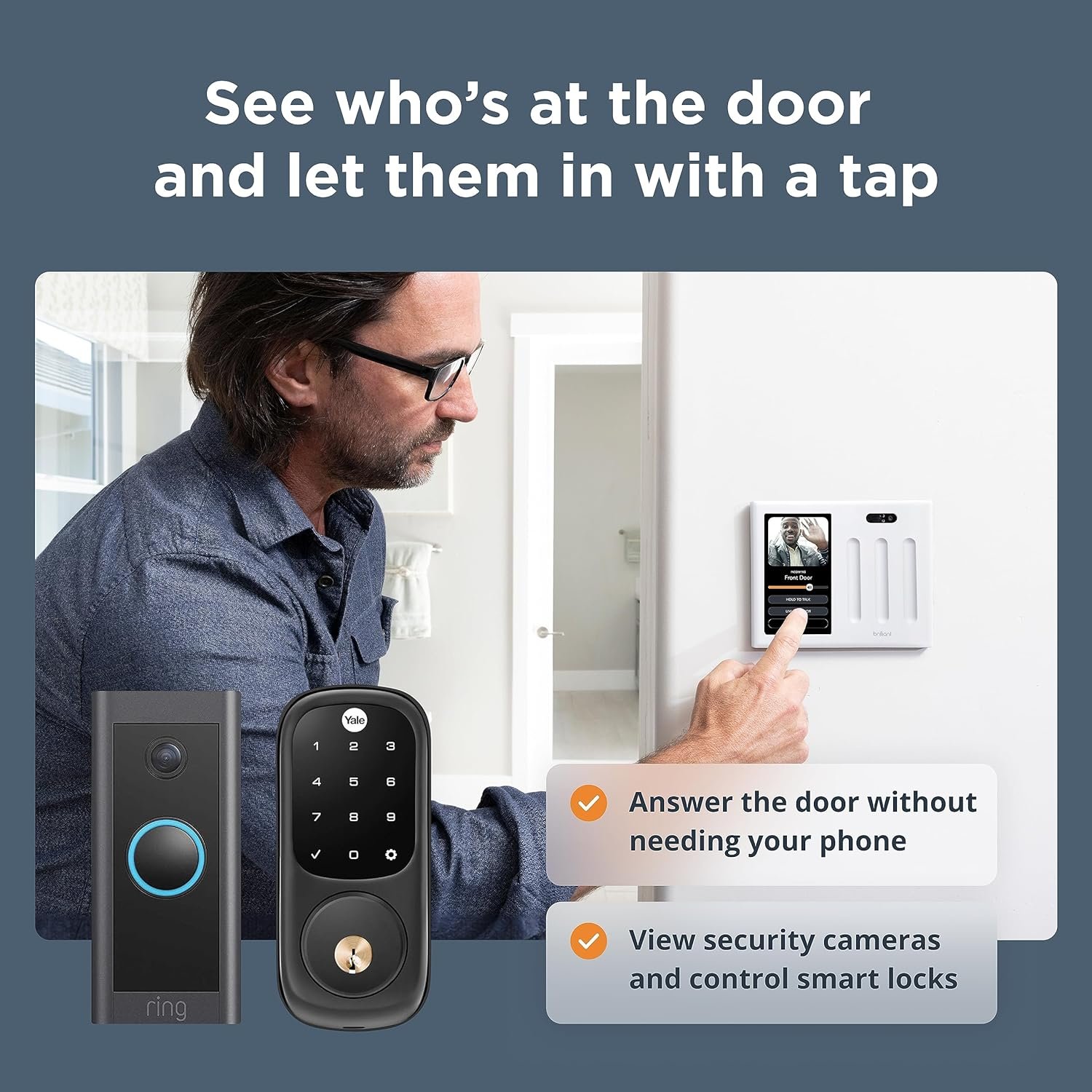 Brilliant touchscreen panels make it easy to control lighting, music, cameras, locks & more