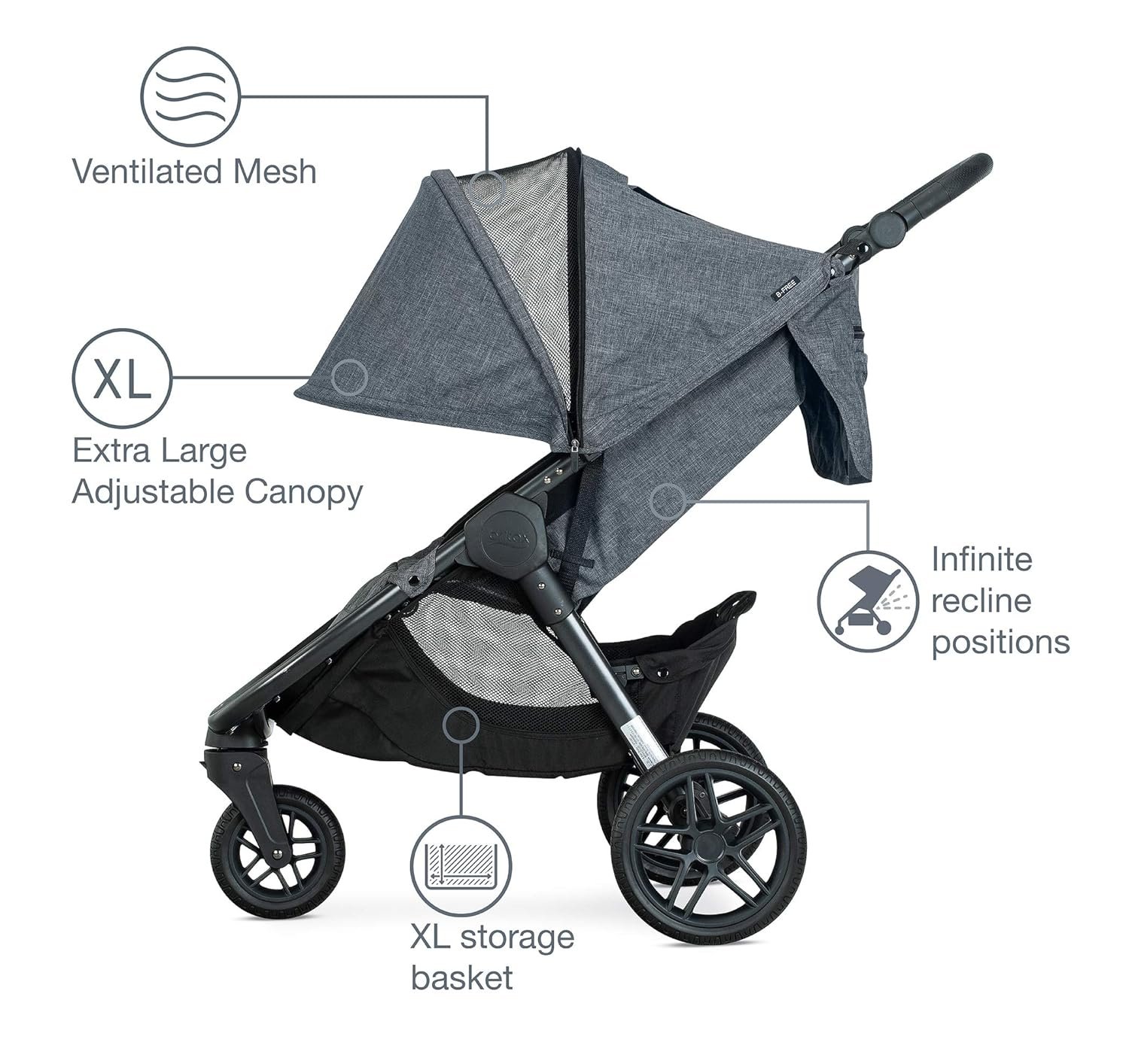 Color: Vibe, Style: Stroller The B-Free Stroller makes family life easy and convenient; You are free to do it all. The 3 wheel configuration for smooth maneuverability and one hand quick fold make this Britax stroller easy to navigate and transport. Never worry about a flat thanks to the all-terrain rubber tires. The large expandable canopy with SPF provides extra protection for your child on sunny or rainy days, while near flat infinite recline keeps them comfortable on the go. With an adjustable handlebar, every parent can find a comfortable grip height. Travel system ready: Simply click your child’s infant car seat into the stroller for a lighter, more convenient way to travel. The B Free Stroller is compatible with all Britax and BOB infant car seats. Before heading out, store your baby gear in the oversized stroller storage basket plus the seven additional storage pockets, and use the flip up calf rest for easy access to your belongings. Fits children from birth to 65 pounds. Maximum unfolded stroller dimensions 44″ L x 24″ W x 42″ H. Interior seat width 13″.