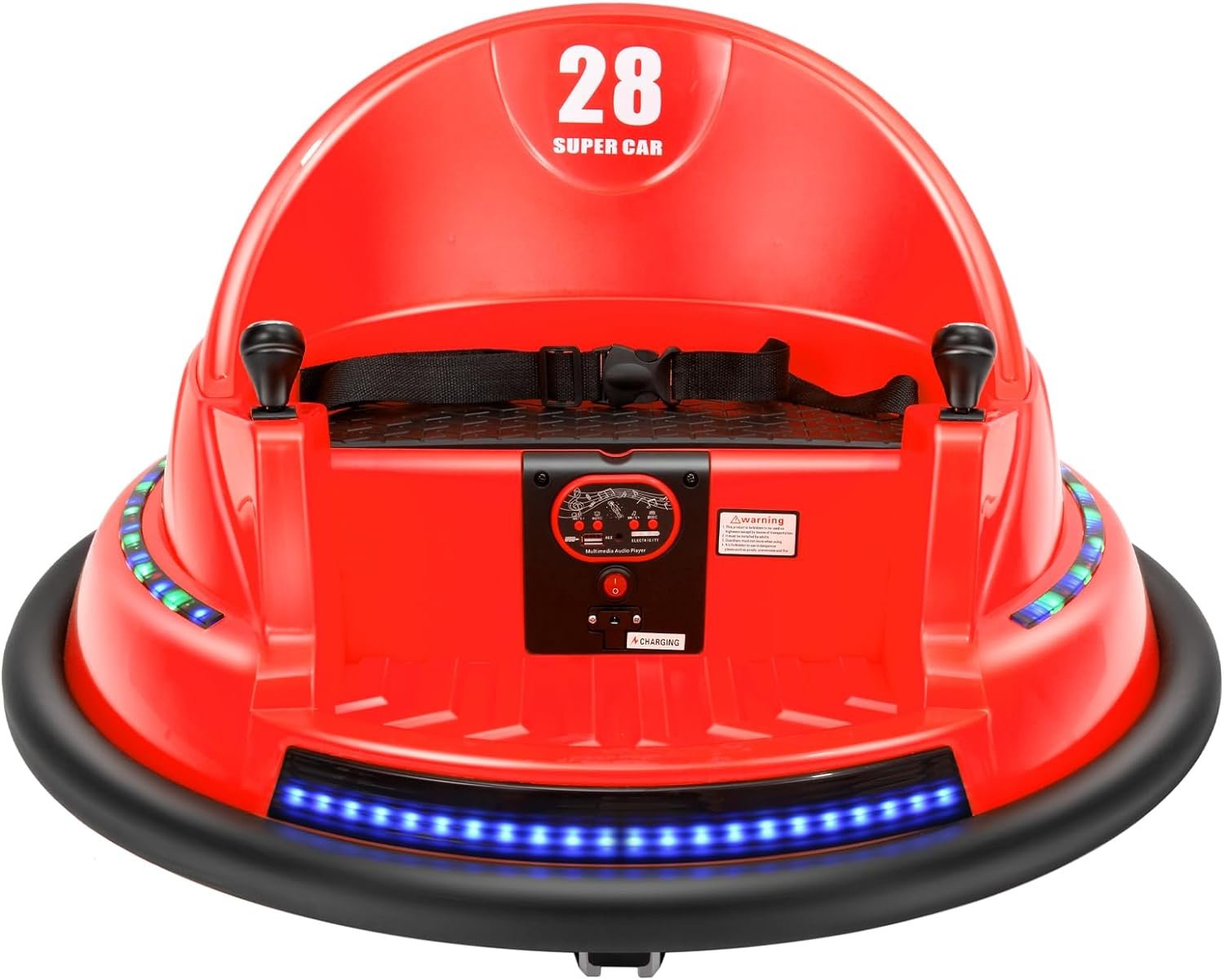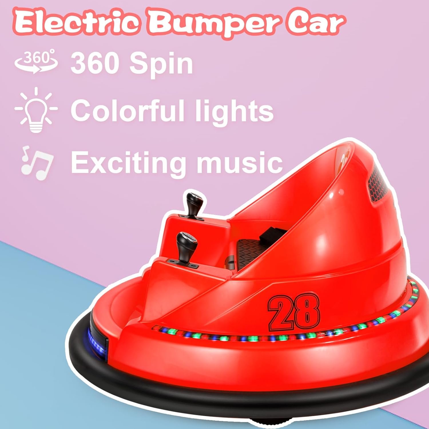 Safety features – ASTM-certified to this bumper car and comprise a safety belt, anti-flat tires and Light. Recommended for children aged 1.5 to 8 years old.