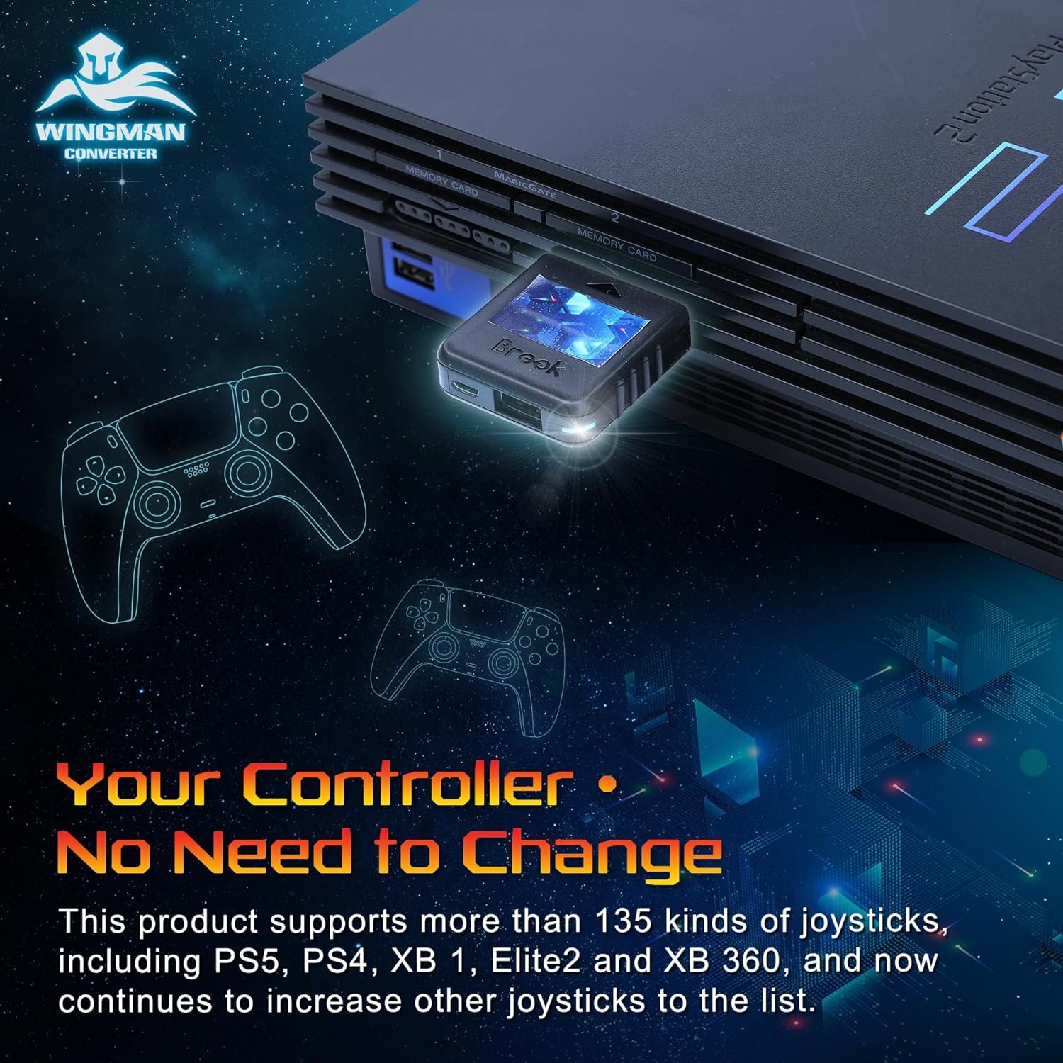 【First-time Setup】Connect your device via its USB and your gaming console. Then it’s registered! Each Wingman PS2 Converter can pair one device at the same time.;【Package includes】: Wingman PS2*1, Brook Keychain*1(Please peel off the release paper on its Front-Back)
