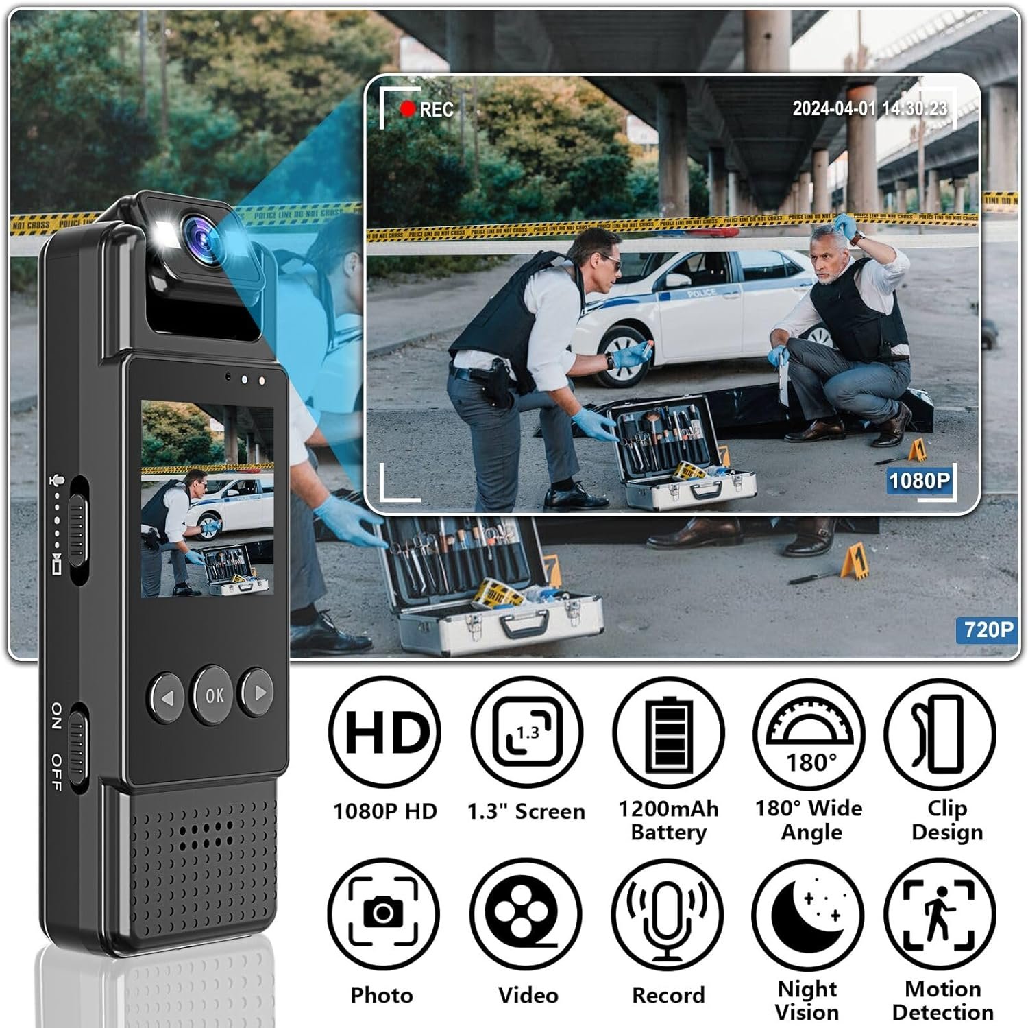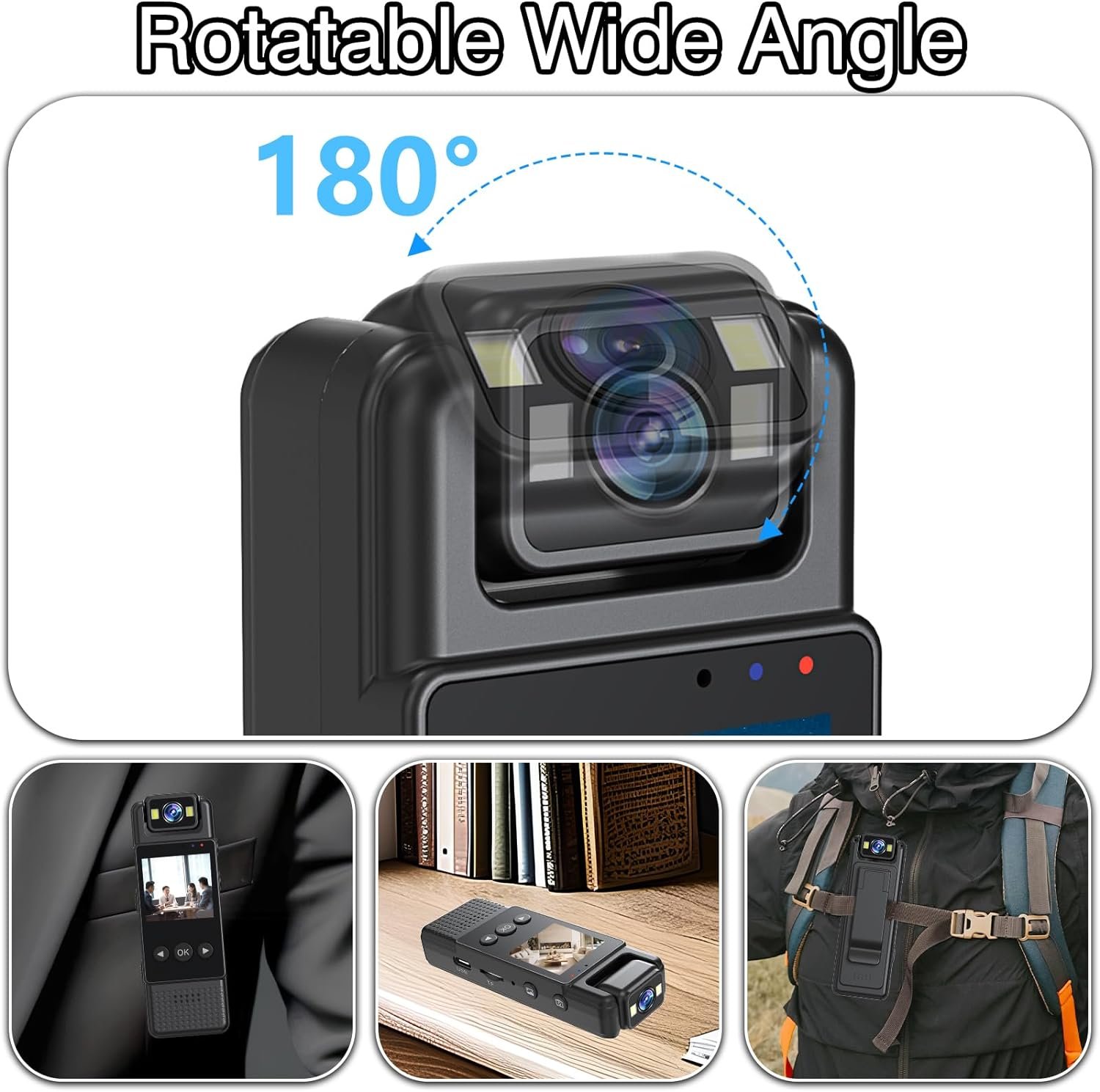 【Multi-functional Body Worn Camera】This bodycam features a 1.3″ LCD screen, secure clip, 180° Rotate/1080P HD len, 2 fill flashes, 1200mAh large battery and free 64G Micro SD card. It is more than enough to capture memorable moments of your daily life and formal occasions, especially perfect for party, gathering, travel, camping, meeting, wedding, security guard, police law enforcement and indoor and outdoor use.