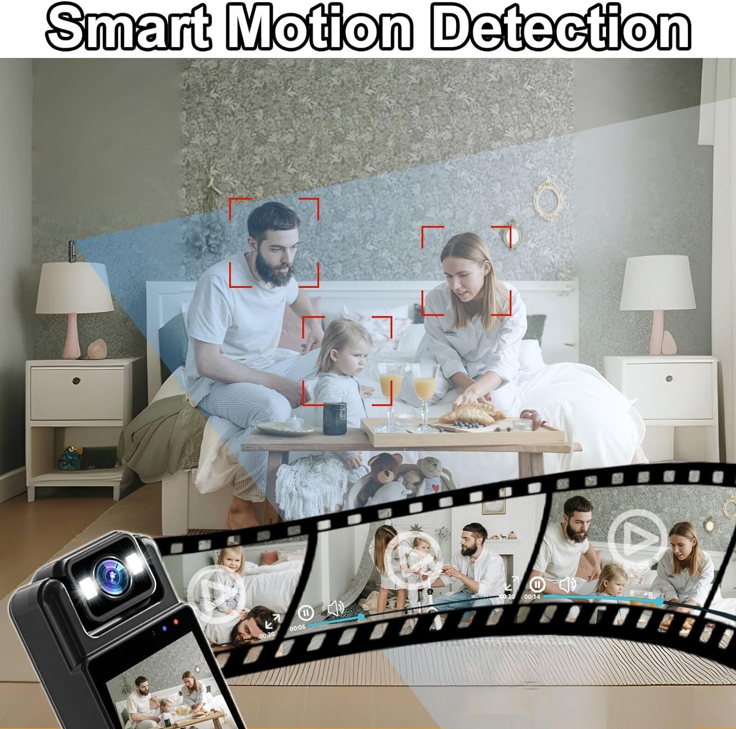 【Smart Motion Detection】Under Motion Detection mode, the bodycam activates to record only when motion triggered. Camera lasting-time will be greatly improved. It auto starts recording videos when motion detects, and ends recording 20 seconds after the motion stops. It is so practical especially when you use it for indoor security.