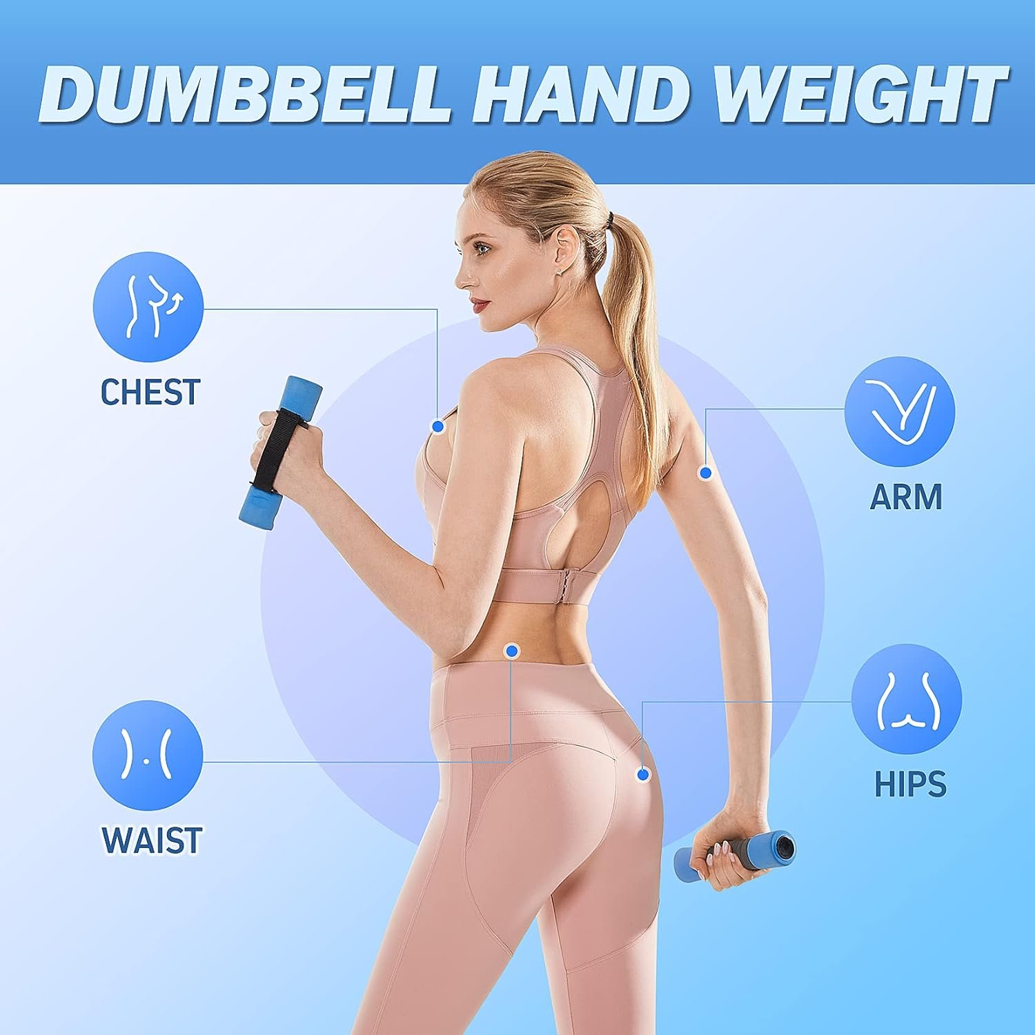LIFE IS MOVEMENT HERE’S WHAT MAKES OUR STEEL DUMBBELL PAIRS AWESOME: 1.ADJUSTABLE STRAP DUMBBELLS The strap of this soft blue dumbbell expands up to 9.4 inches, making it feasible to use for almost all generations 2.SUPERIOR DURABILITY Our adjustable dumbbells are made of durable and heavy-duty material that prevents rust and makes them a perfect choice for your next workout challenge. 3.Convenient A range of dumbbells help maintain fitness without a gym, and the compact size stores easily. EXERCISE ANYTIME! Skip Gym Membership Convenient Fitness from the Comfort of Home Incorporate to your daily workout routine Easy to use for home workout Can be used while jogging, hike or trek Easy to carry on vacation.