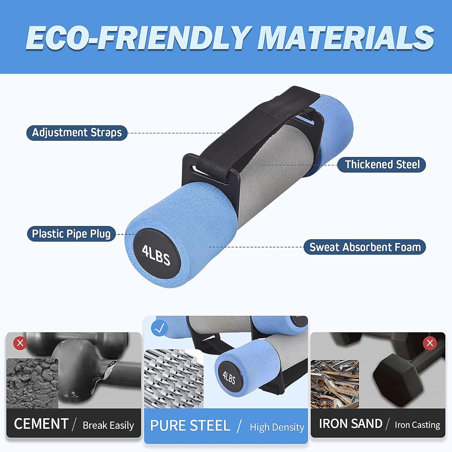 COMFORTABLE HAND GRIP & STRAP : Walking hand weights set comes with a soft non-slip memory foam grip and hand strap, offers a comfortable and secure exercise and protects fitness home gym equipment from getting damaged.