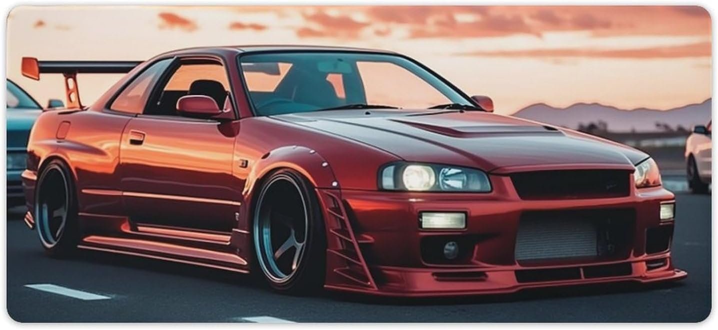 Package Include:1 x Japanese Jdm Car R34 Red Stance Extended Large Gaming Mouse Pad