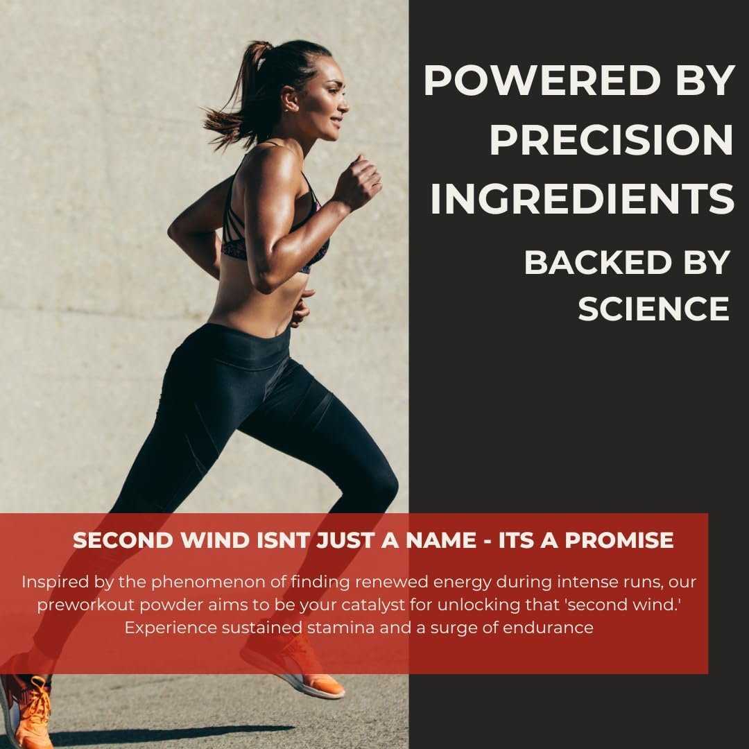 Unmatched Energy and Focus: Say goodbye to fatigue and hello to sustained energy. Second Wind contains a blend of premium ingredients designed to boost your energy levels, sharpen your focus, and enhance mental clarity. Whether you’re hitting the gym or embarking on a long run, our preworkout powder will keep you energized and invigorated throughout your workout.