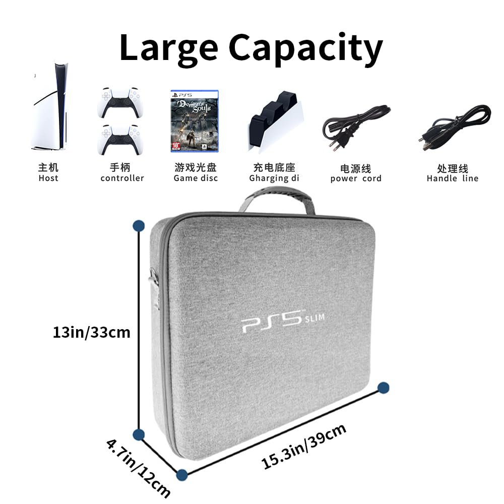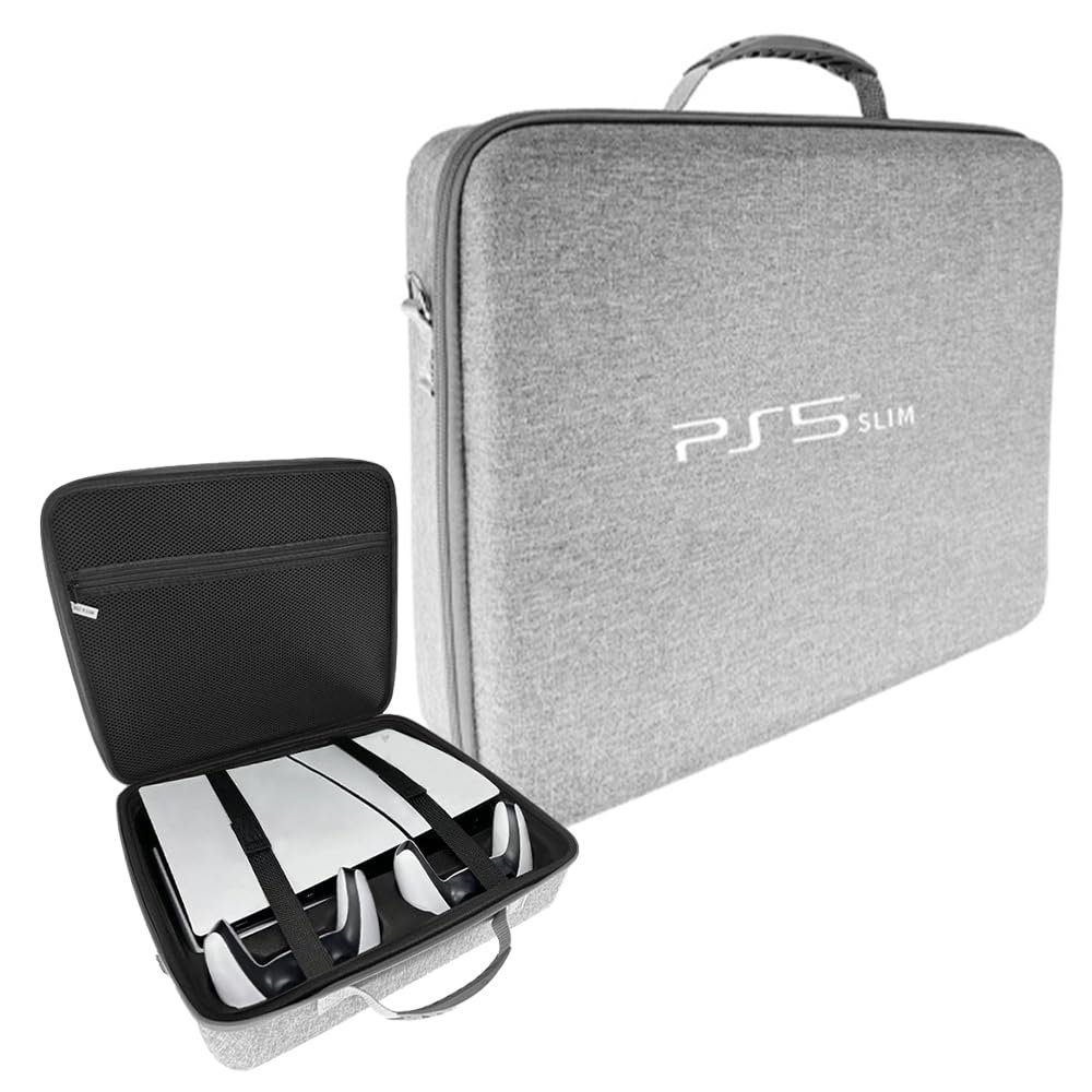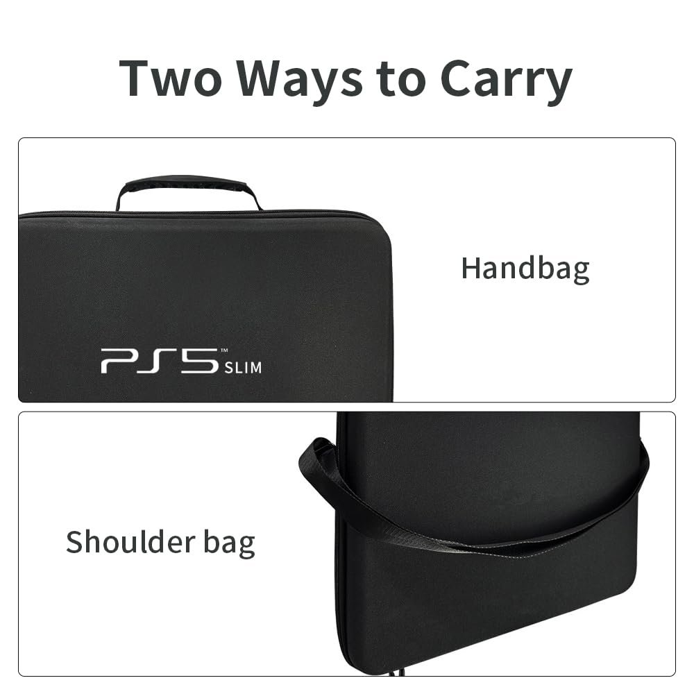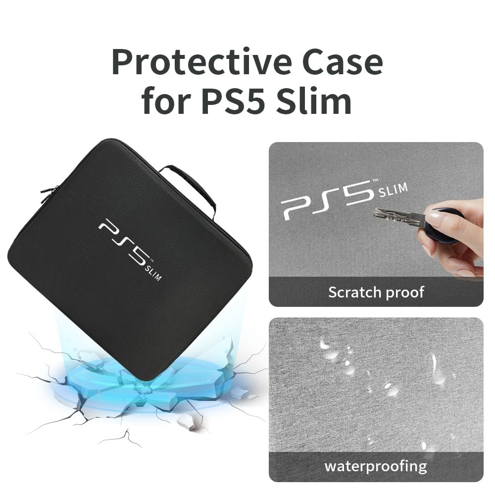 【PORTABLE & PRACTICAL】: The PS5 Slim carrying case features a padded shoulder strap and handle for easy carrying. Cushioned partitions and waterproof enclosures provide ultimate protection for your gear.