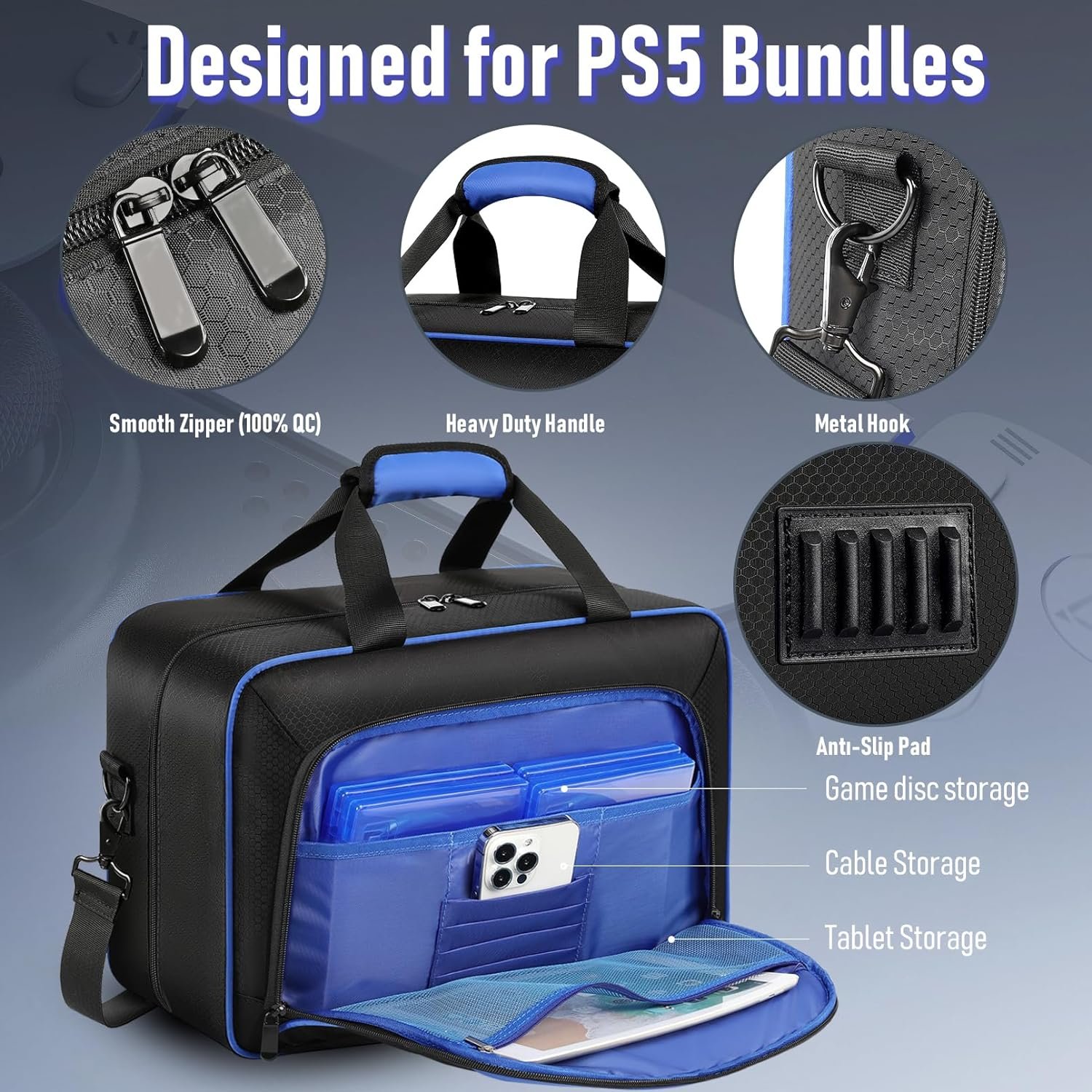 🎮【Easy to Carry】: The carrying case for PS5 is equipped with handles and adjustable shoulder straps, allowing you to make it as a handbag, shoulder bag or slide on a suitcase. Take your machine and accessories to travel, parties or vacations and enjoy fun gaming
