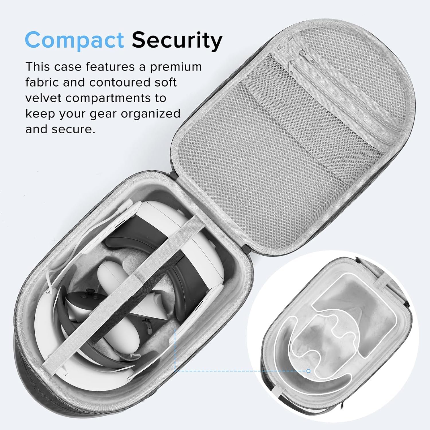 [Fits Comfortably in Place] The custom cut EVA foam and soft lining inside the quest 2/quest 3 travel case snugly holds your VR headset and accessories firmly in place and provide protection when moving and bumping.