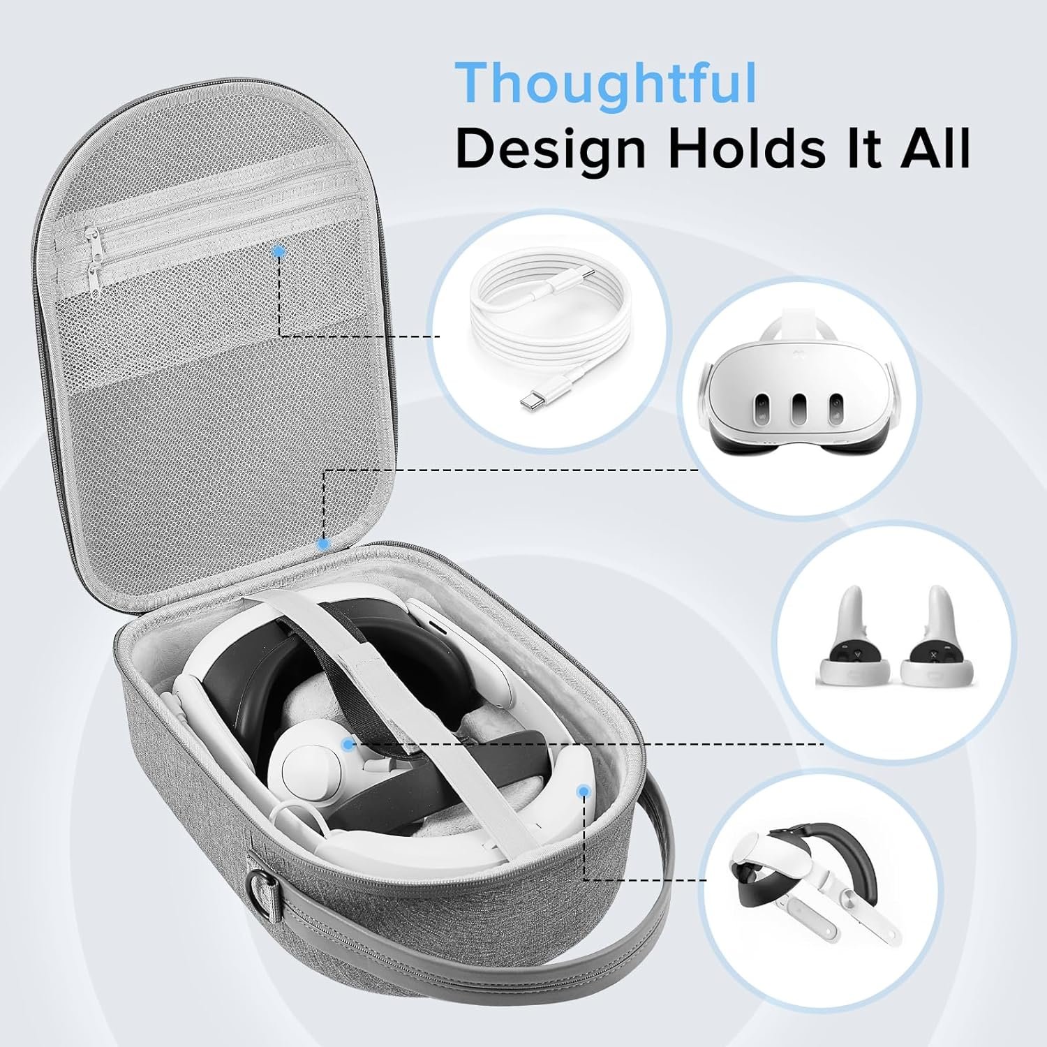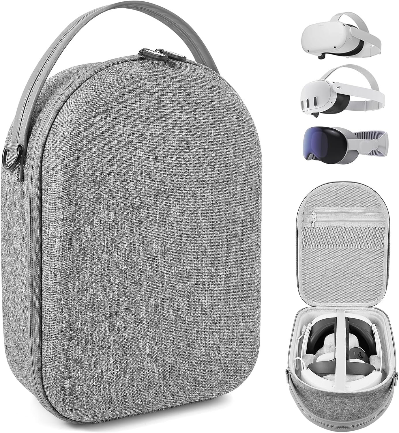 [Upgrade Details] Double zipper design in the quest 2/quest 3 hard case provides easy access to your VR headset and accessories; the comfortable sturdy hand strap and adjustable shoulder strap for convenient carry on; and the extra mesh pocket for storing data cable/charging head, etc.