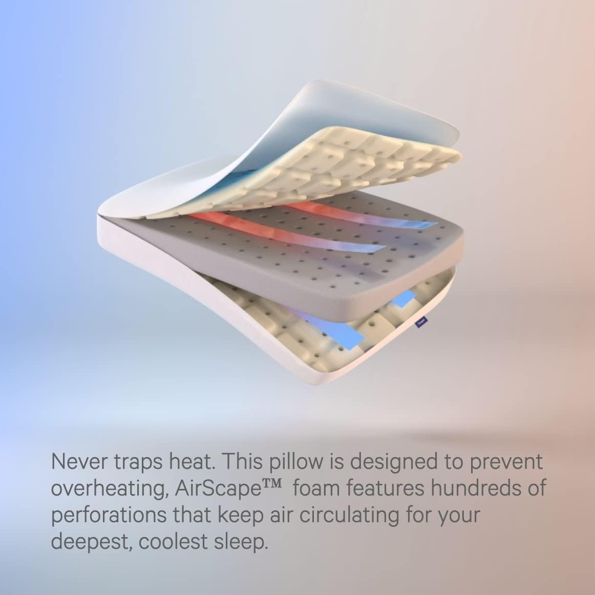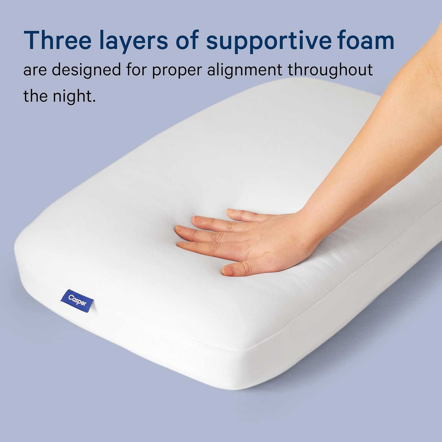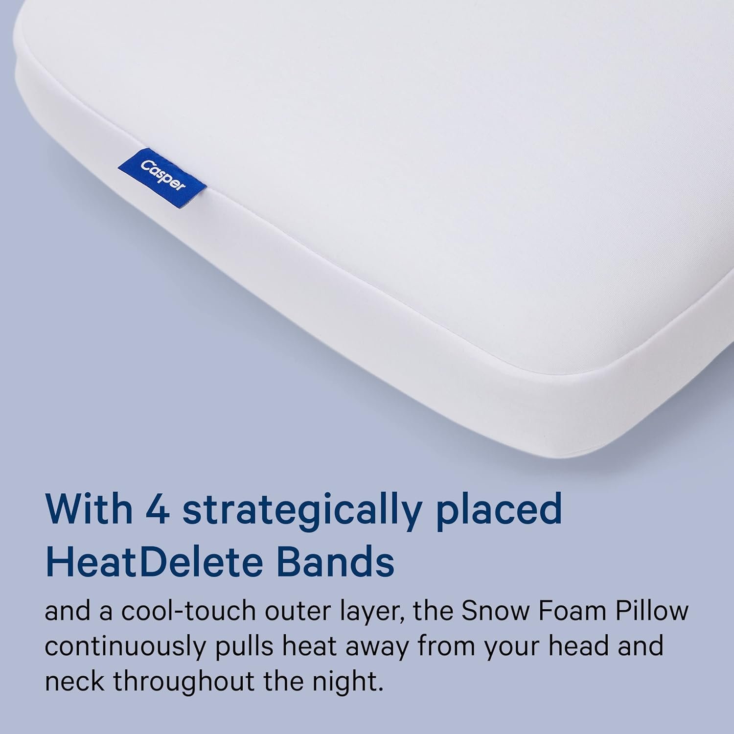 The Casper Snow Foam Pillow features three layers of supportive and cooling foam with a uniquely huggable feel. A meticulously designed inner layer contours to your head and neck in all sleep positions, while two plush outer layers offer cushioning comfort. We purposefully designed the pillow to prevent you from overheating. Tiny channels in the foam circulate air out and away. Plus, an extra breathable jersey knit cover looks cool and sleeps even cooler.