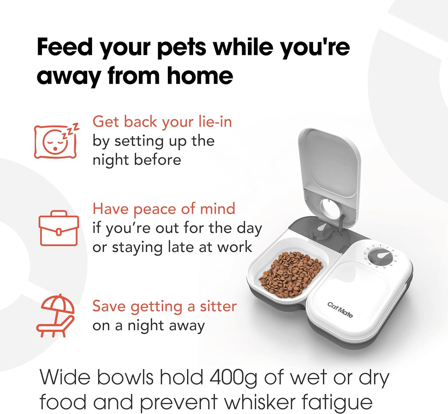 Cat Mate C200 2-Meal Automatic Pet Feeder for Cats and Small Dogs with Ice Pack