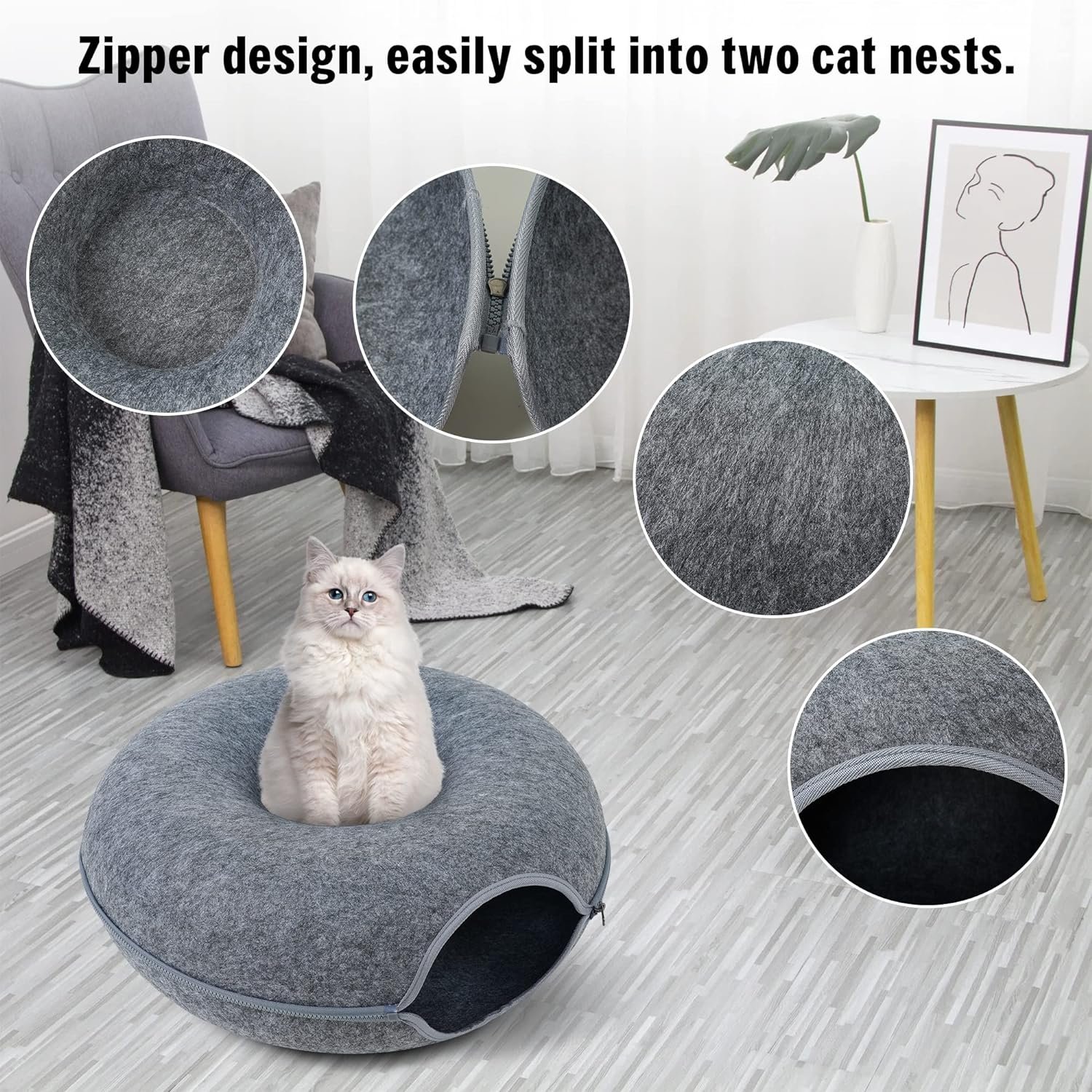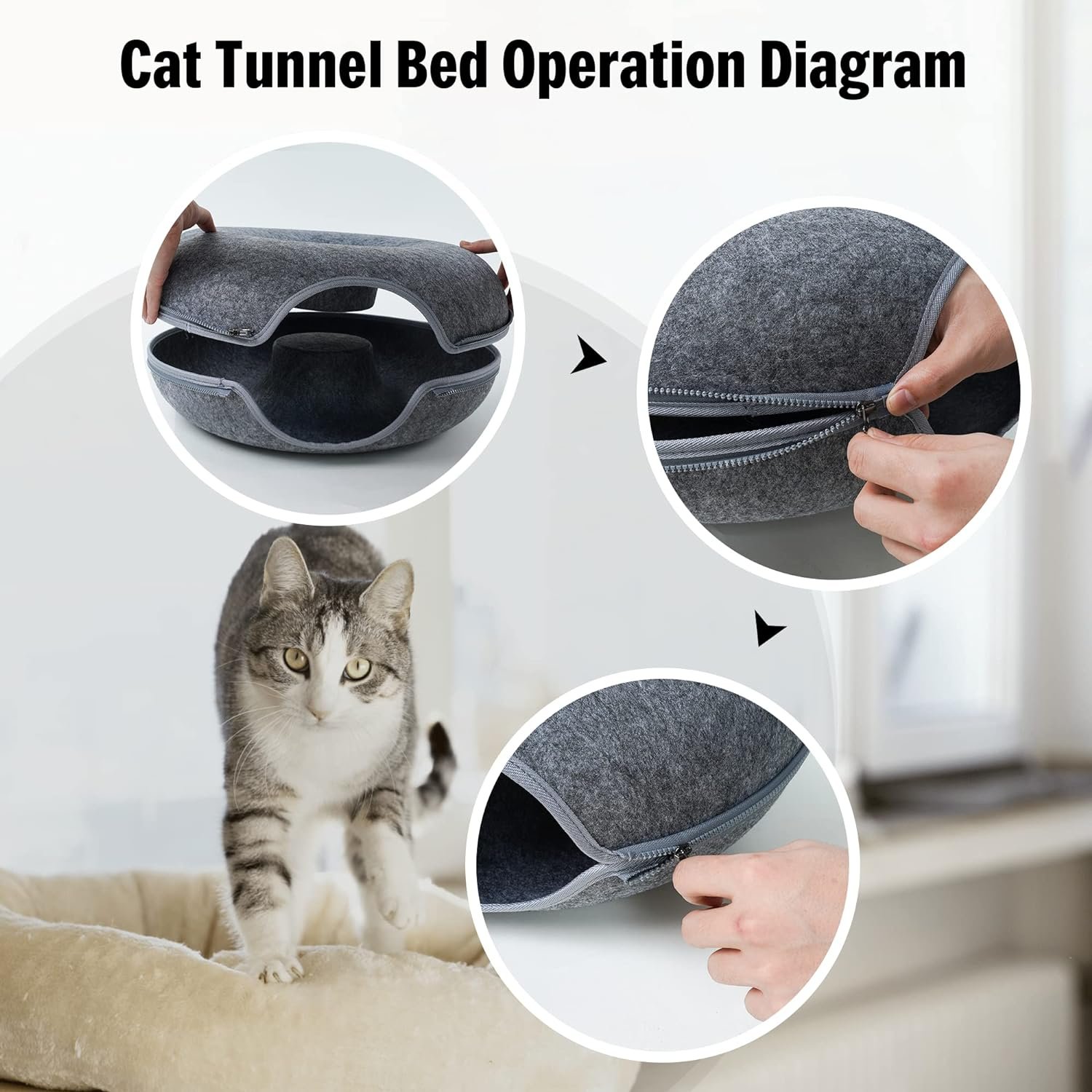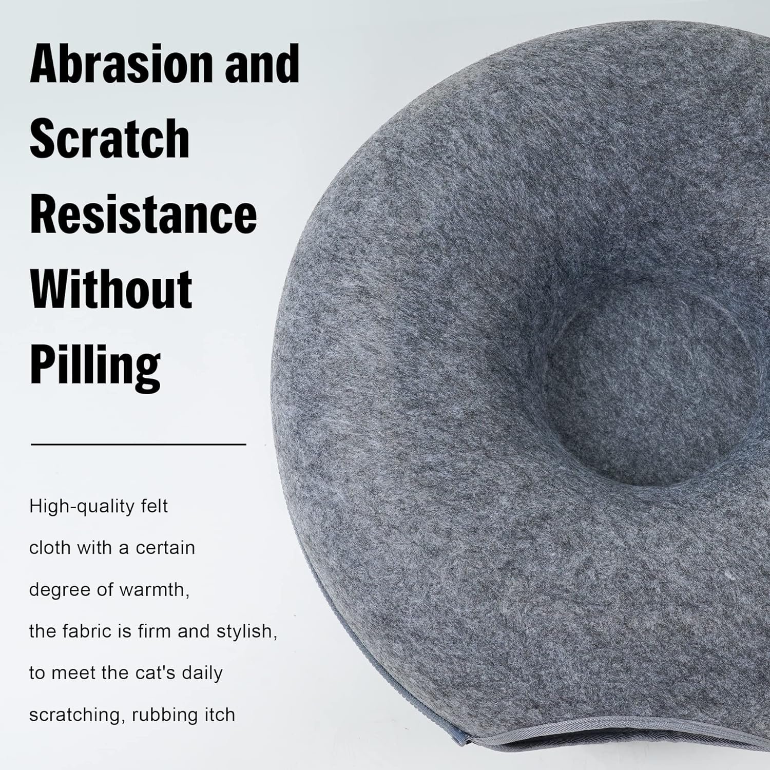 SELECTED FELT MATERIAL – The cat tunnel bed for indoor cats consists of only felt and a zipper, which is strong, scratch-resistant, non-pilling and safe for your furry babies. The cat bed is detachable and washable (not machine washable), and can be used in all seasons.