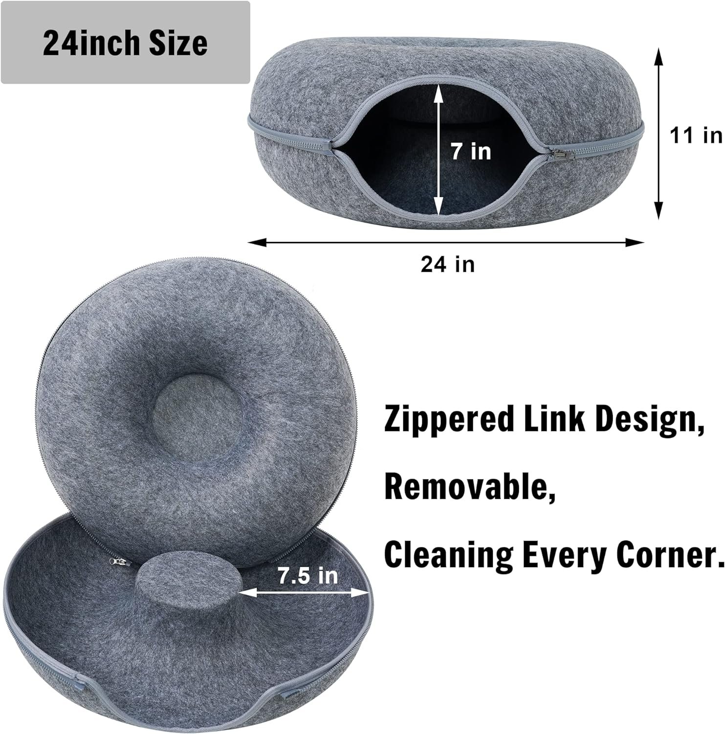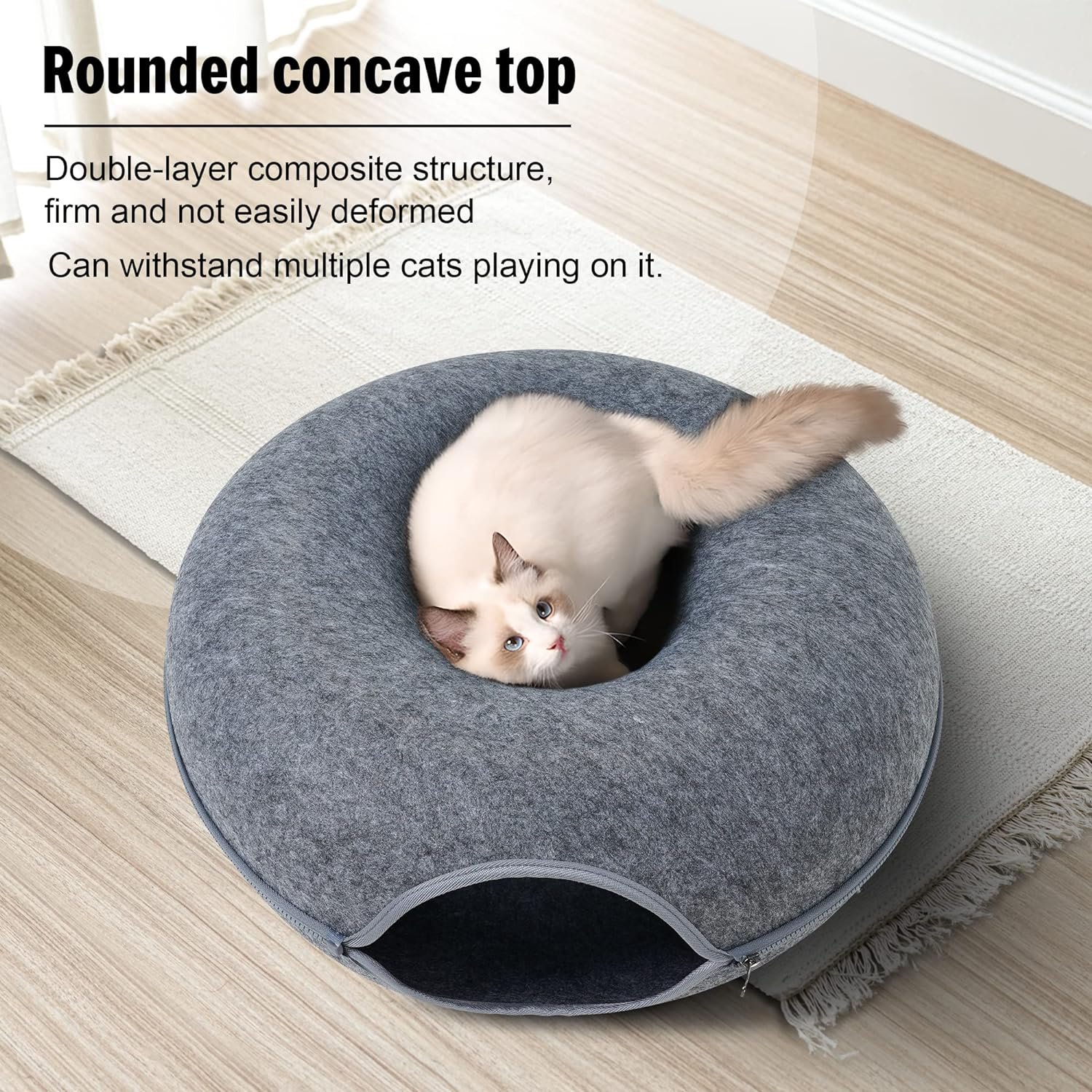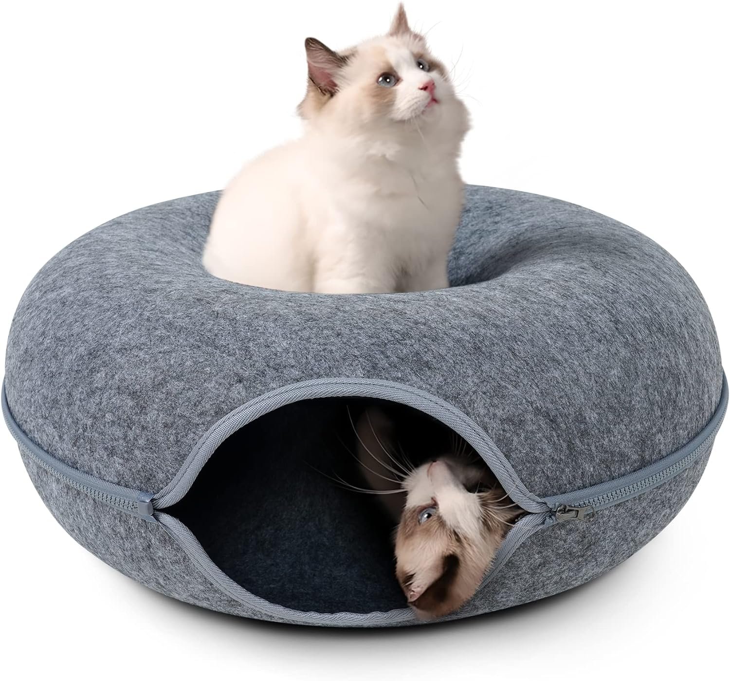 SELECTED FELT MATERIAL – The cat tunnel bed for indoor cats consists of only felt and a zipper, which is strong, scratch-resistant, non-pilling and safe for your furry babies. The cat bed is detachable and washable (not machine washable), and can be used in all seasons.