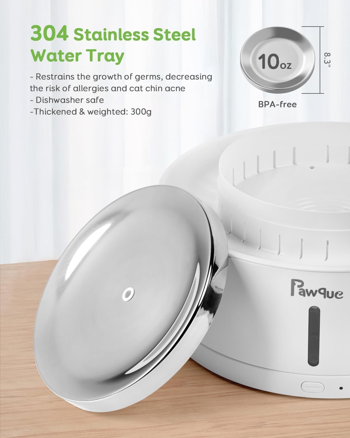 Stainless Steel Water Tray: Our large dog water dispenser is made from BPA-free ABS, ensuring the health of your pets for daily use. The 101 oz top water tray is constructed from 304 food-grade stainless steel that’s dishwasher safe. It effectively reduces the growth of dirt and minimizes the potential for chin acne.