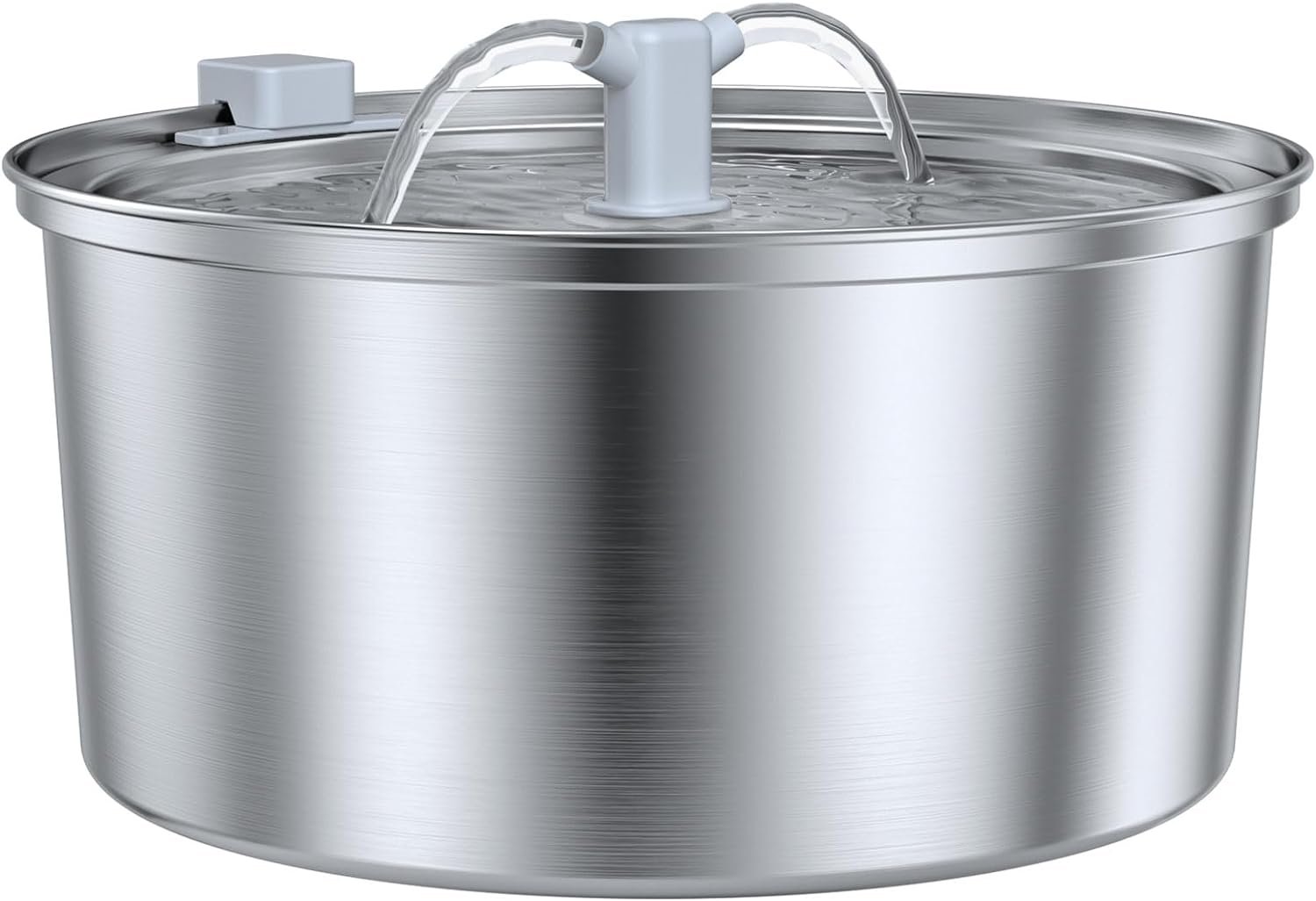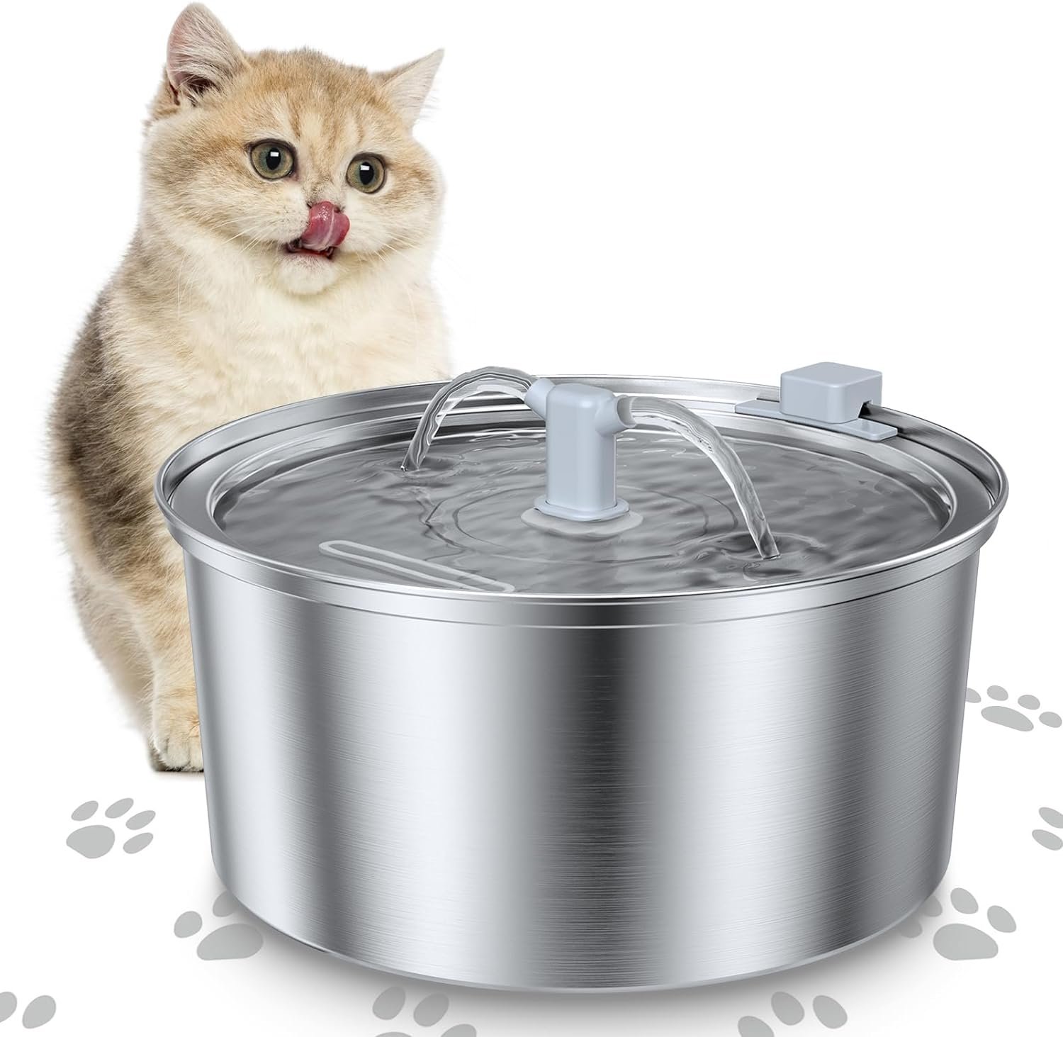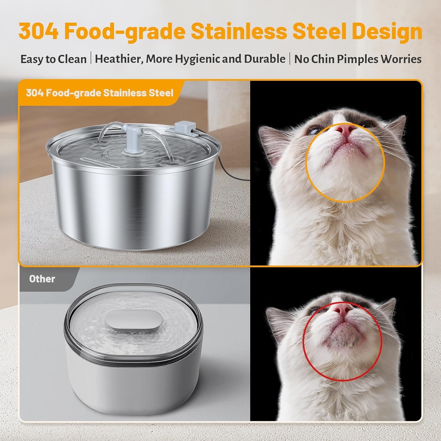🐾 【UPGRADED STAINLESS STEEL】: The pet water fountain is made of high quality 304 stainless steel, which is more healthier and durable than plastic cat water dispensers. The automatic cat fountain is not only environmentally friendly, but also easy to clean, ensuring the health of cats.