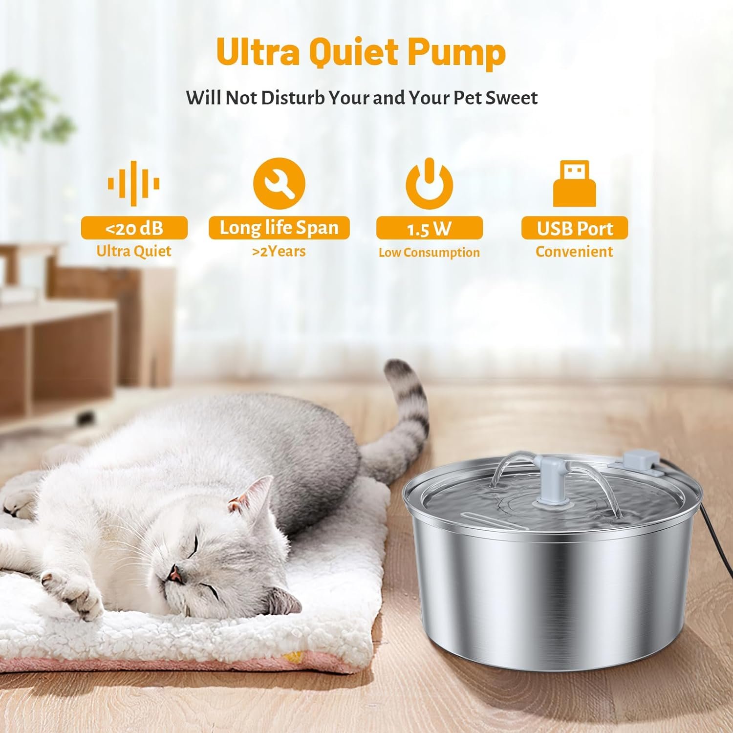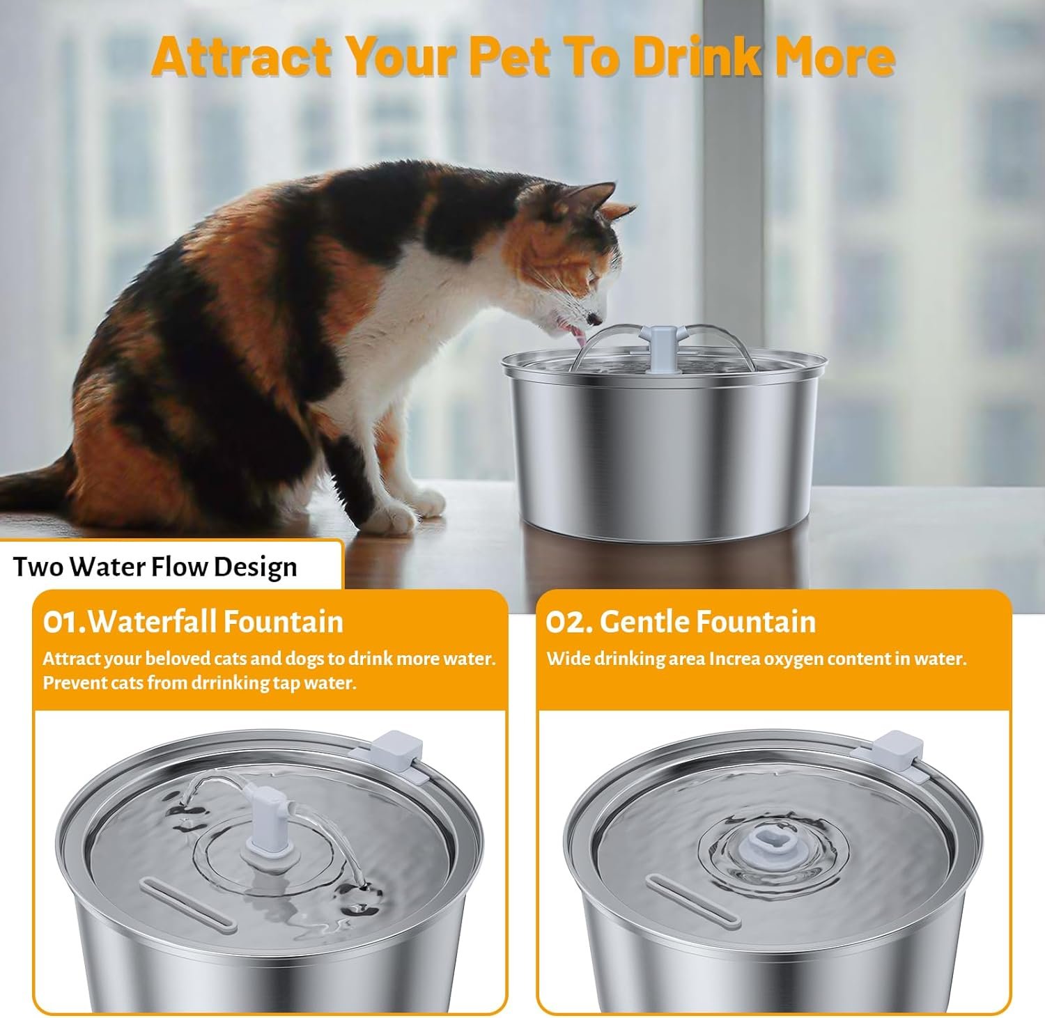 Cat Water Fountain: Cat Fountains for Drinking with Ultra-Quiet Pump, Automatic Cat Drinking Fountain with Filters, Pet Water Fountain for Cats Indoor with Faucets, Stainless Steel Cat Water Fountain