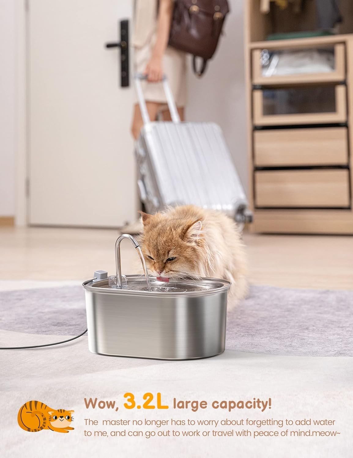 3.2L large capacity! Enough water for pets for 8 days.