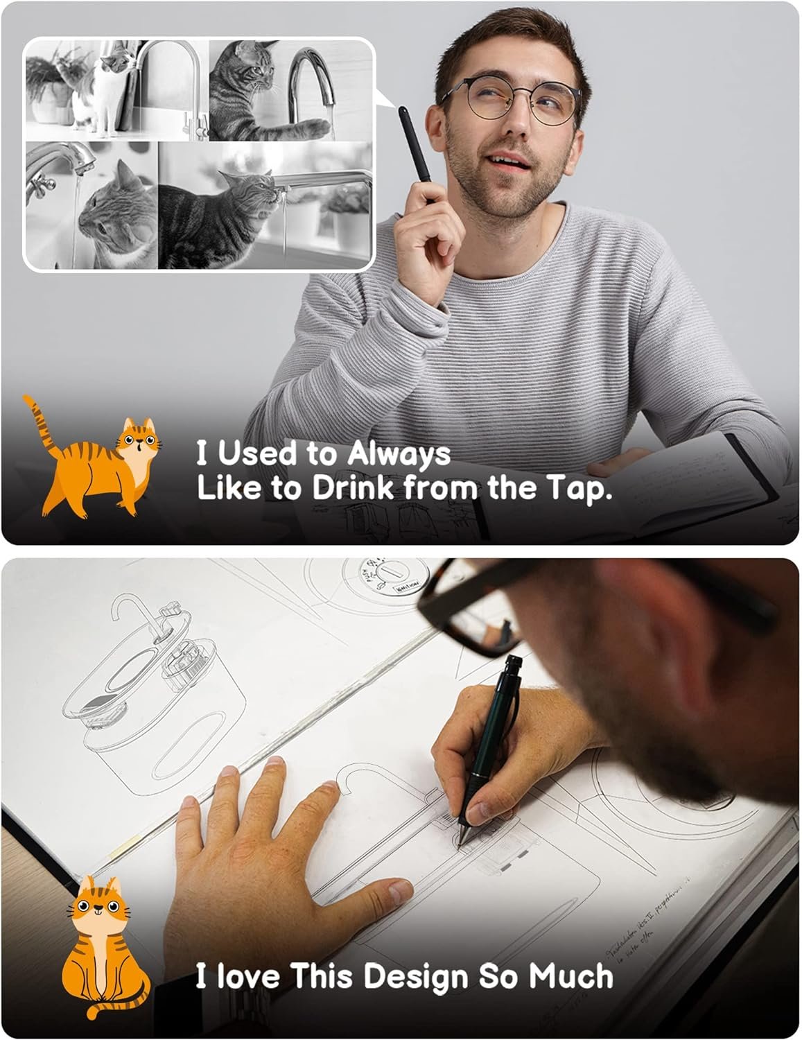 【Safer way to drink water】Mommy told me the material used in this cat fountain is high quality 304 stainless steel material from Germany, it adds oxygen and keeps the water fresh, which prevents my chin from turning black, I really like it!