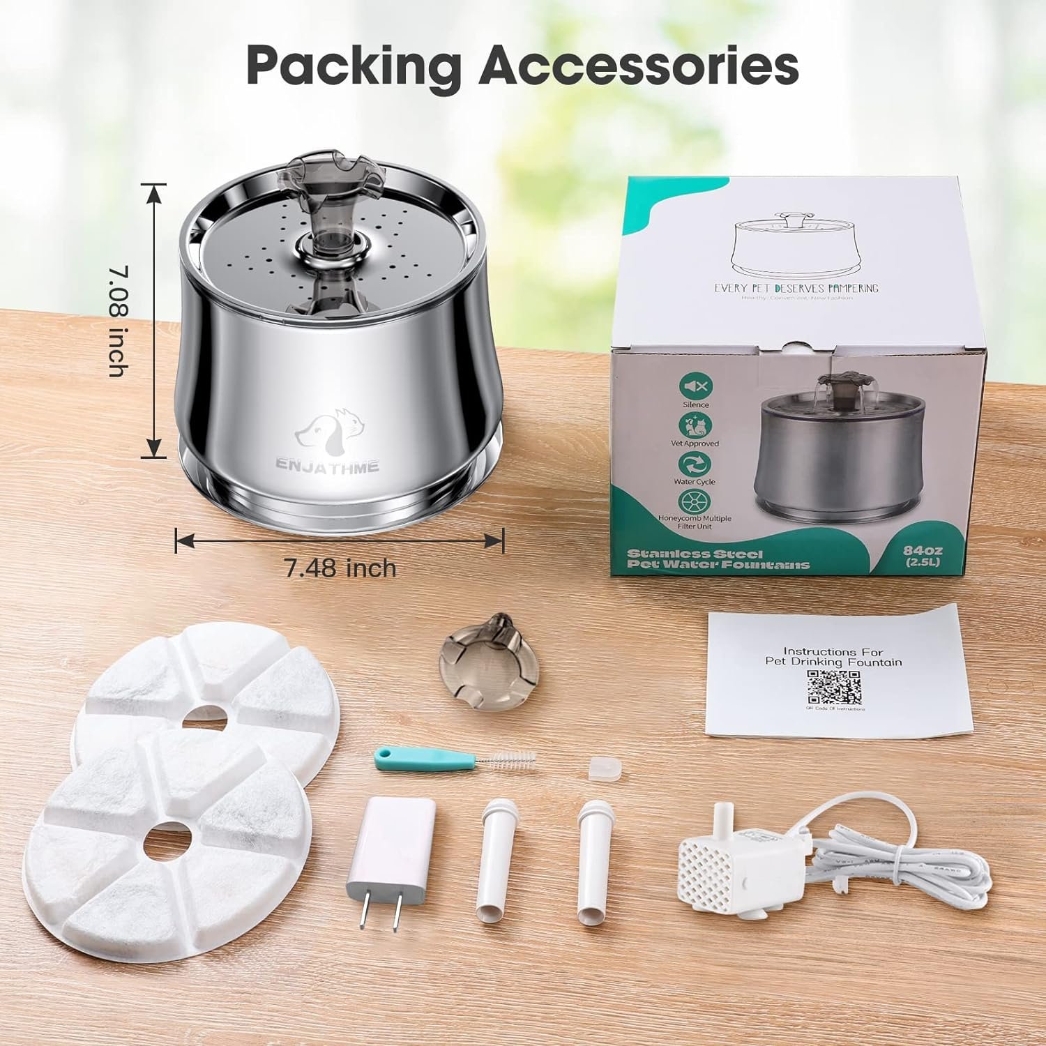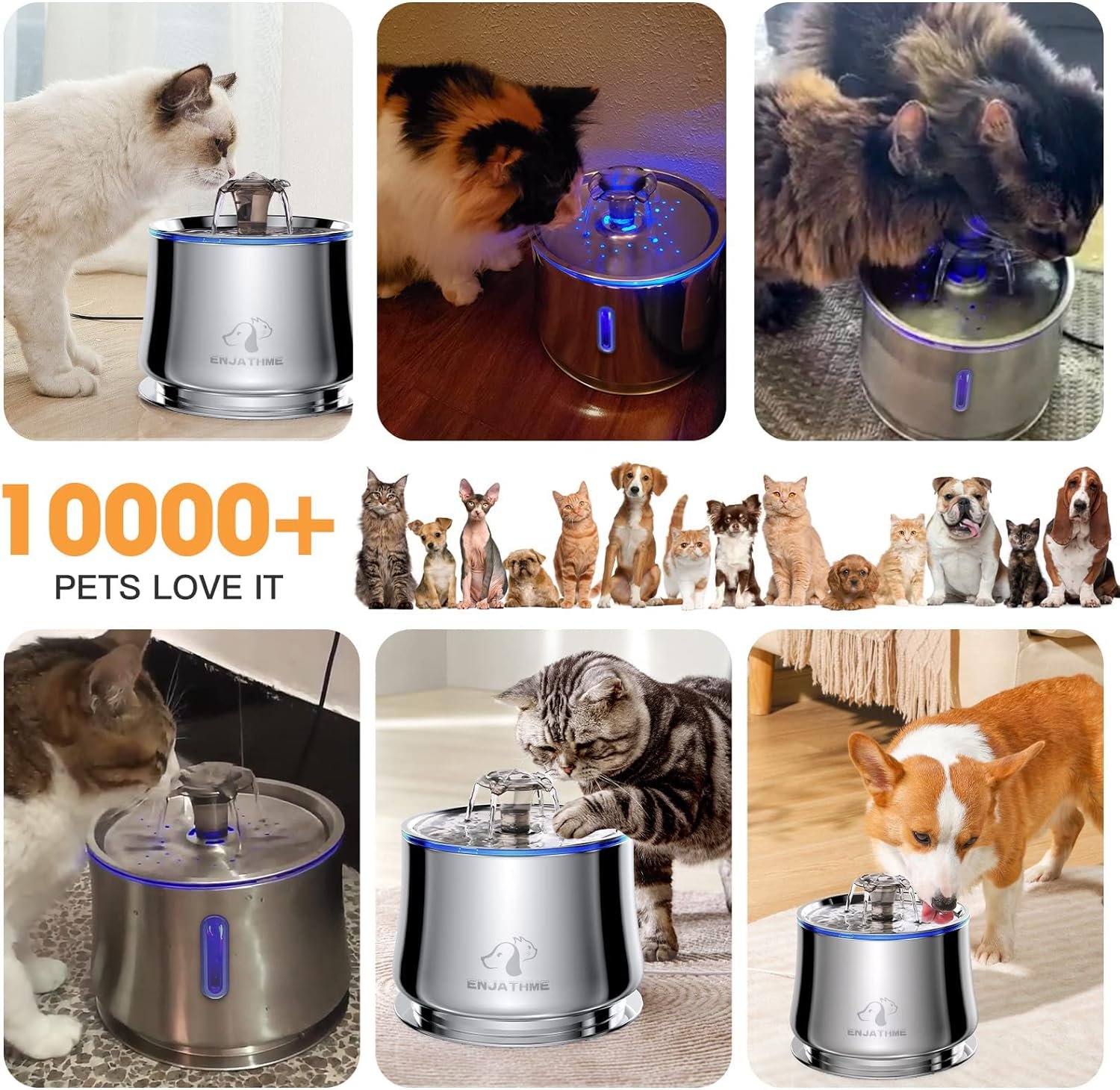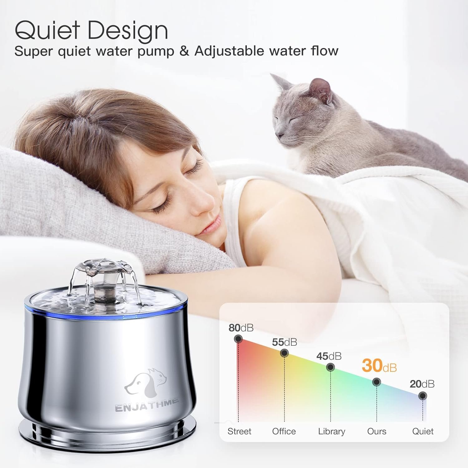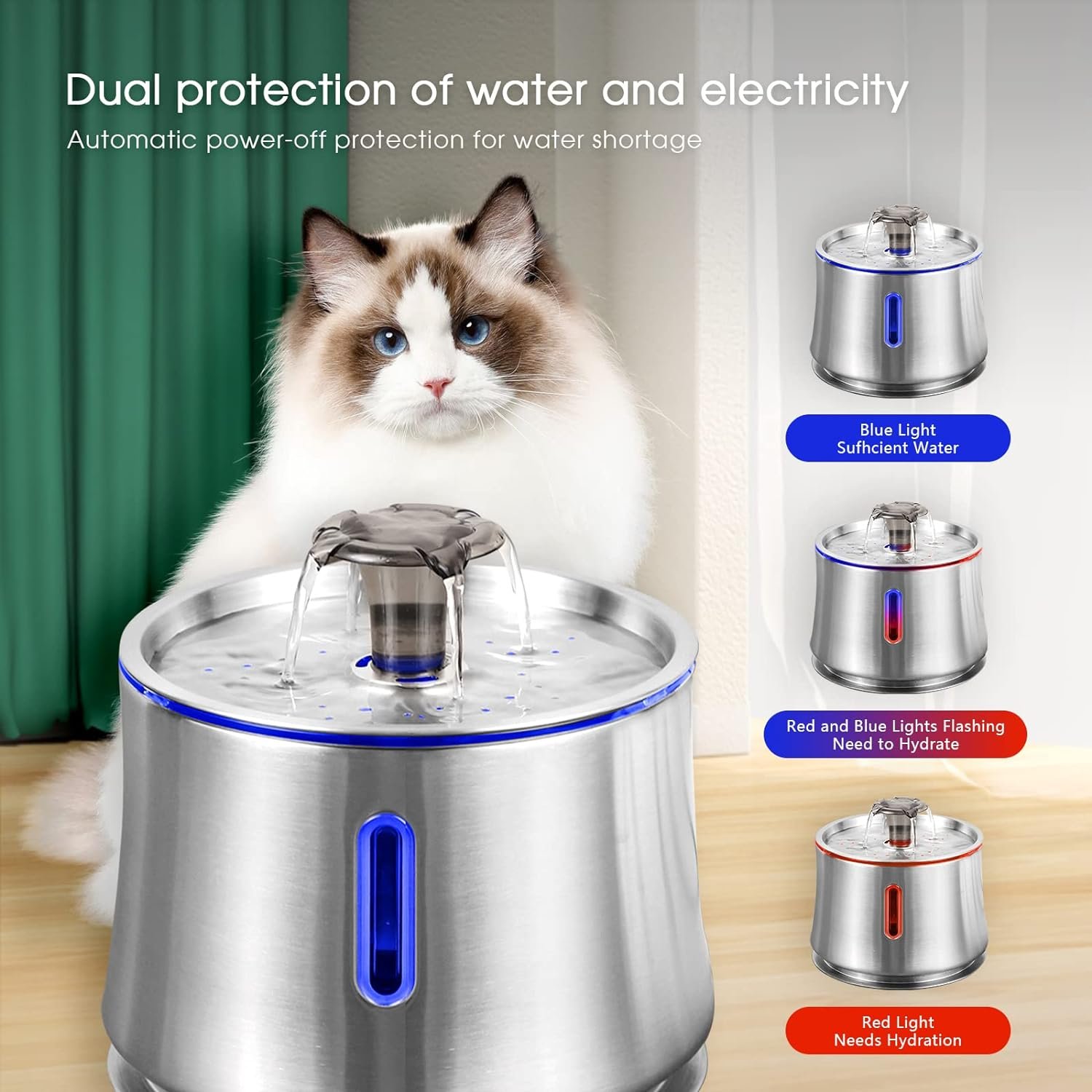 The Stainless steel pet water fountain is the perfect addition to any home with pets. This cat water fountain is also suitable as a pet water fountain, providing clean and fresh drinking water through its triple-layer filtration system.
